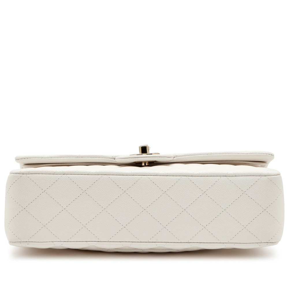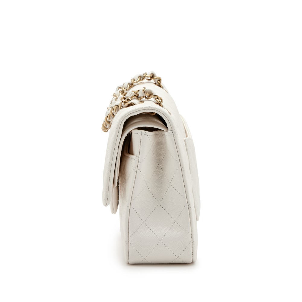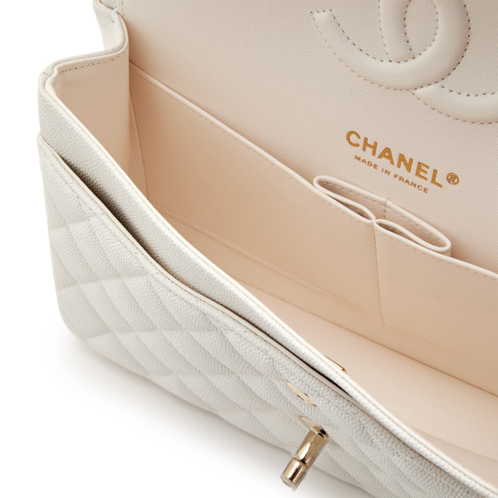 Chanel Cream White Quilted Caviar Medium Classic Double Flap Light Gold Hardware, 2022