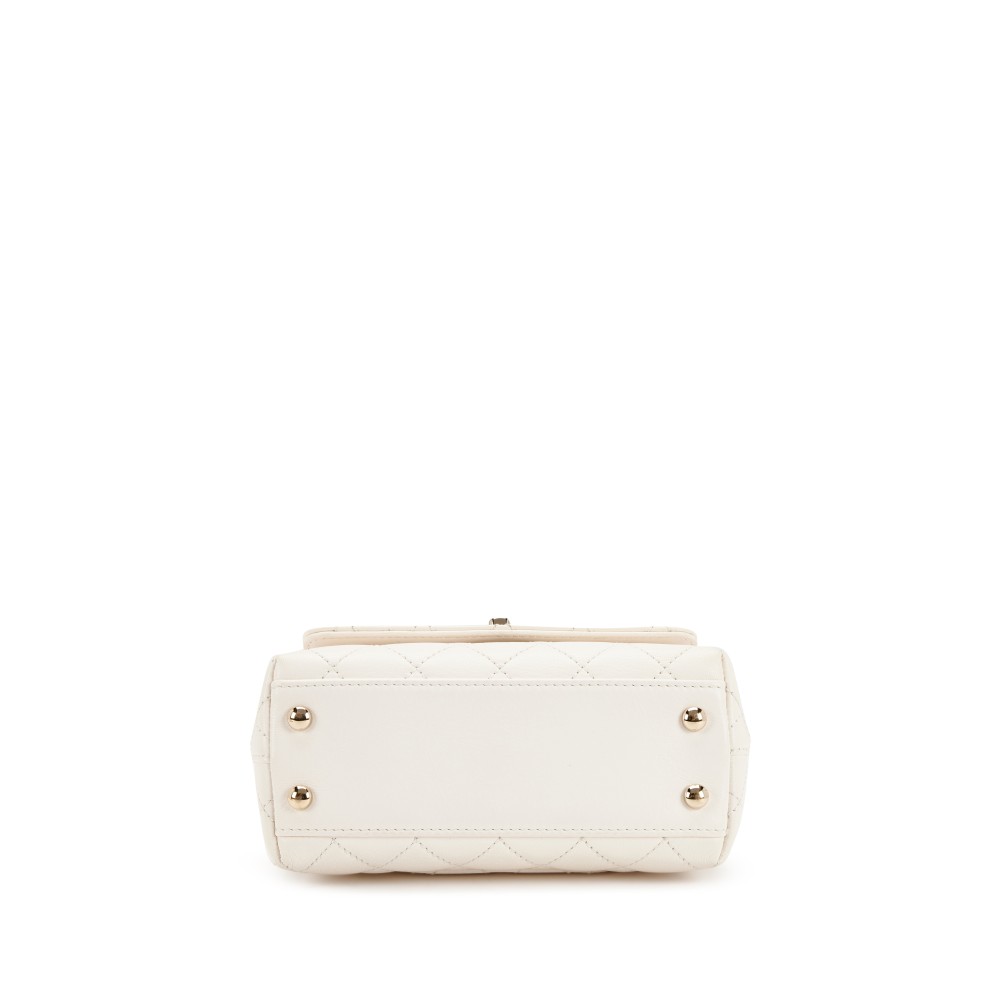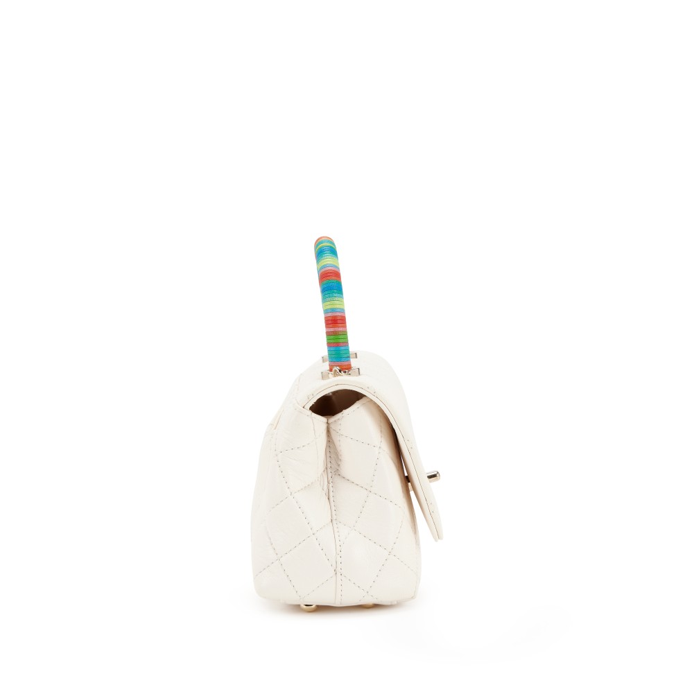 Cream White Quilted Ch?vre Extra Mini Rainbow Coco Handle Flap Gold Hardware, 2021