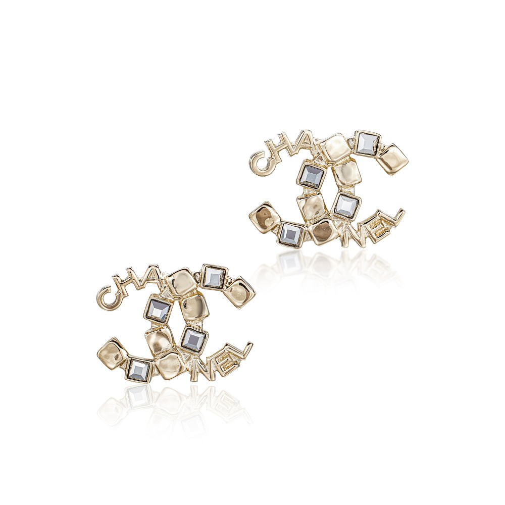 Chanel Crystal and Pale Gold Metal CC Earrings