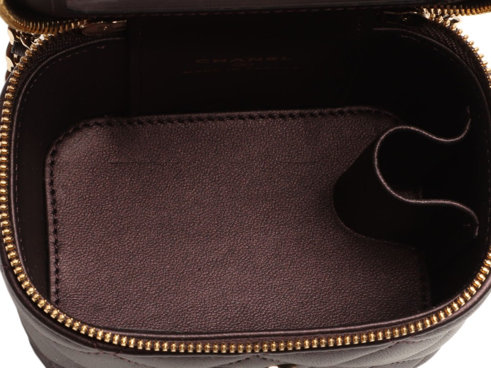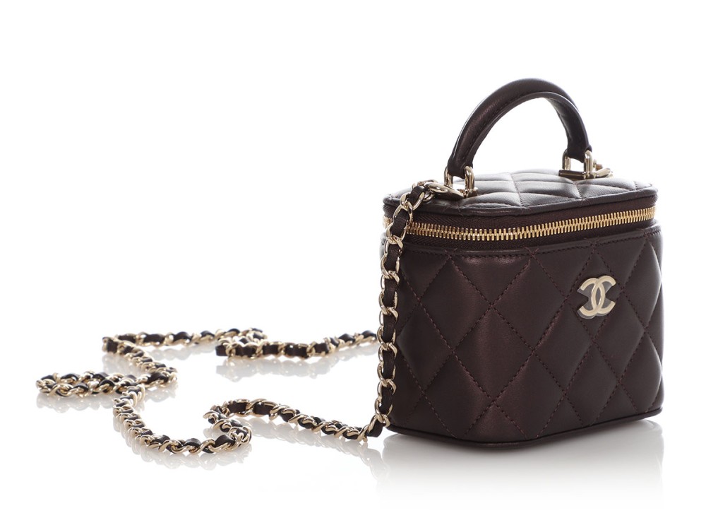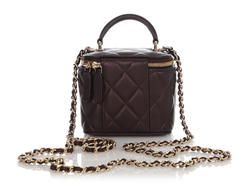 Chanel Dark Brown Quilted Lambskin Top Handle Vanity Case With Chain, 2022