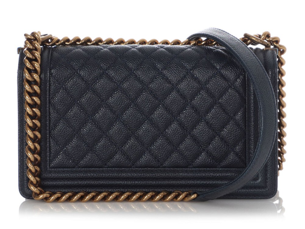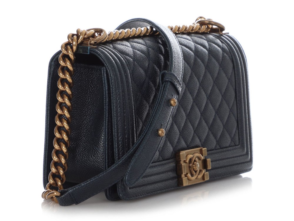 Chanel Dark Navy Quilted Caviar Old Medium Boy Bag Aged Gold Hardware, 2014-2015