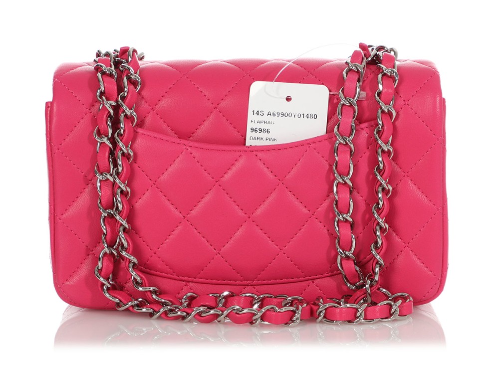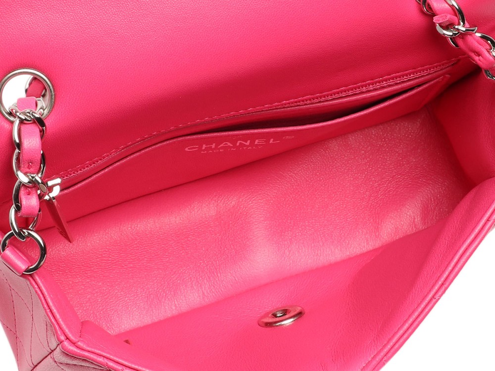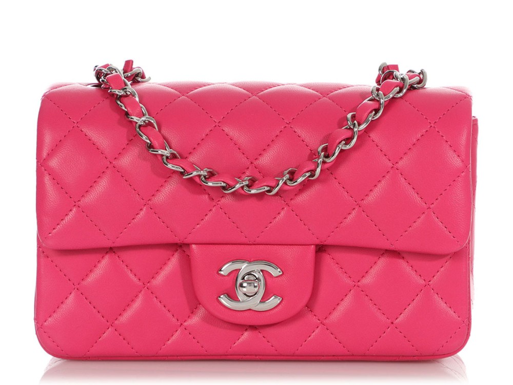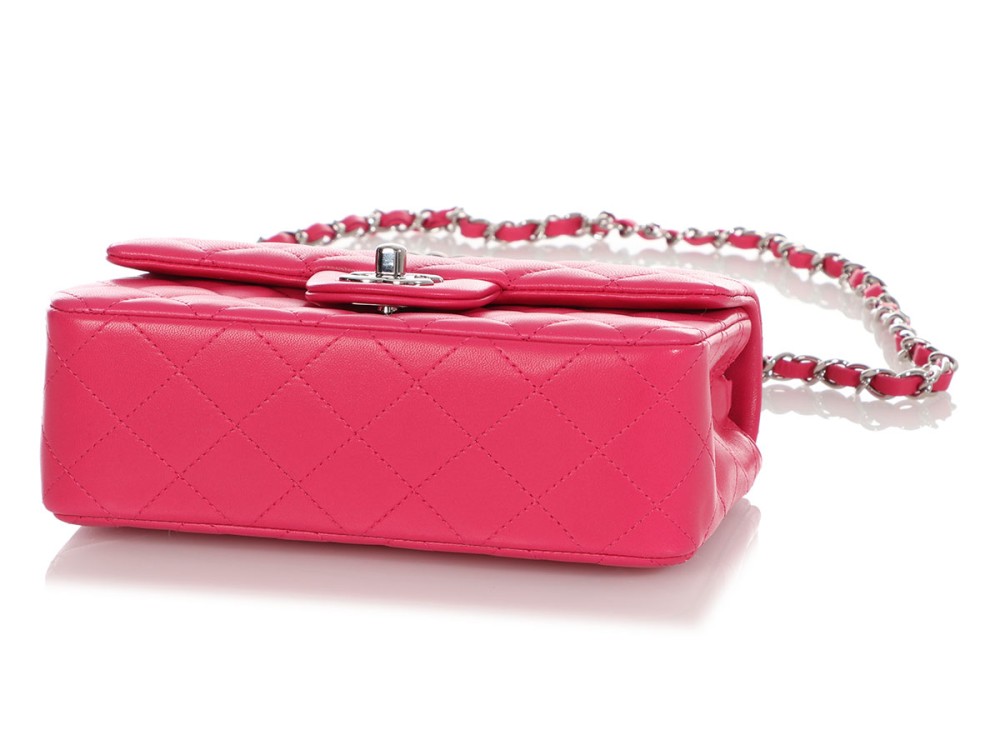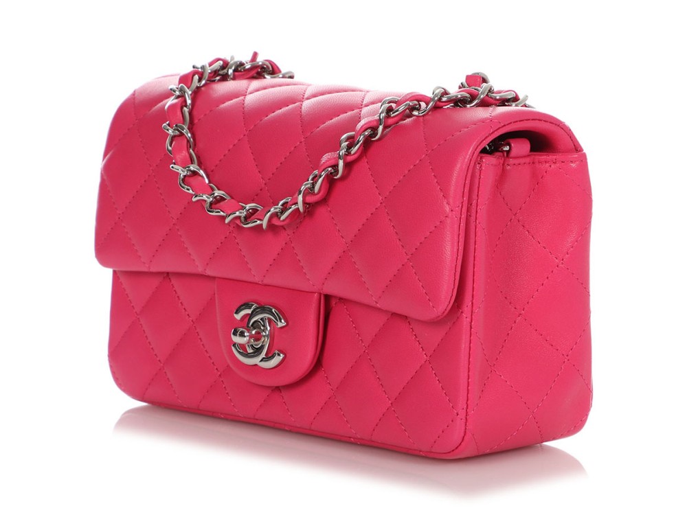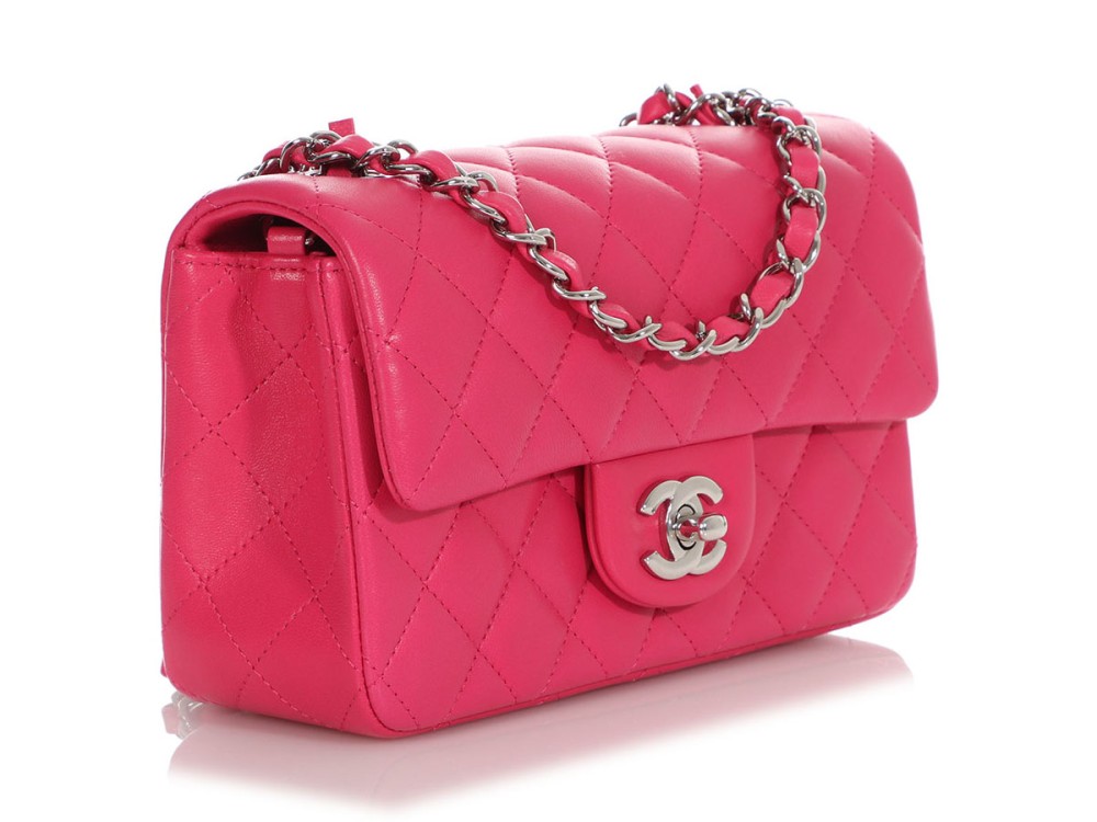 Chanel Dark Pink Quilted Lambskin Rectangular Mini Single Flap Silver Hardware, 2014