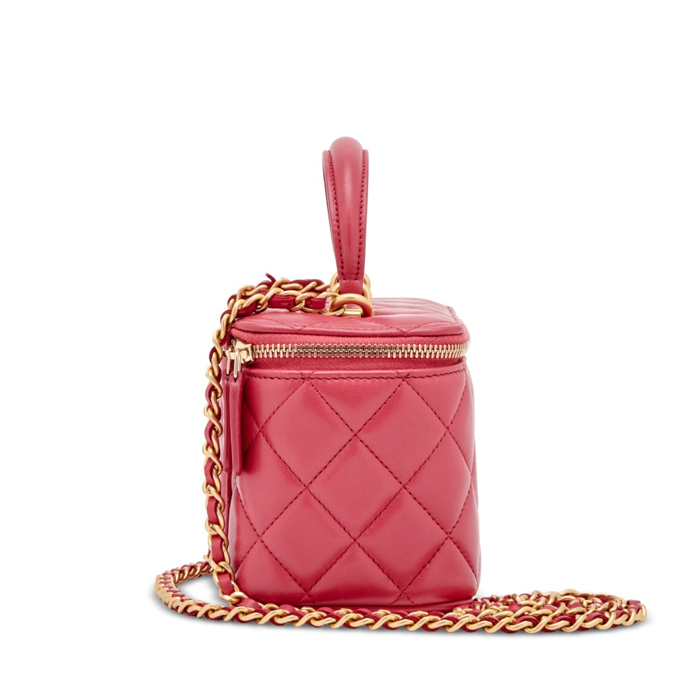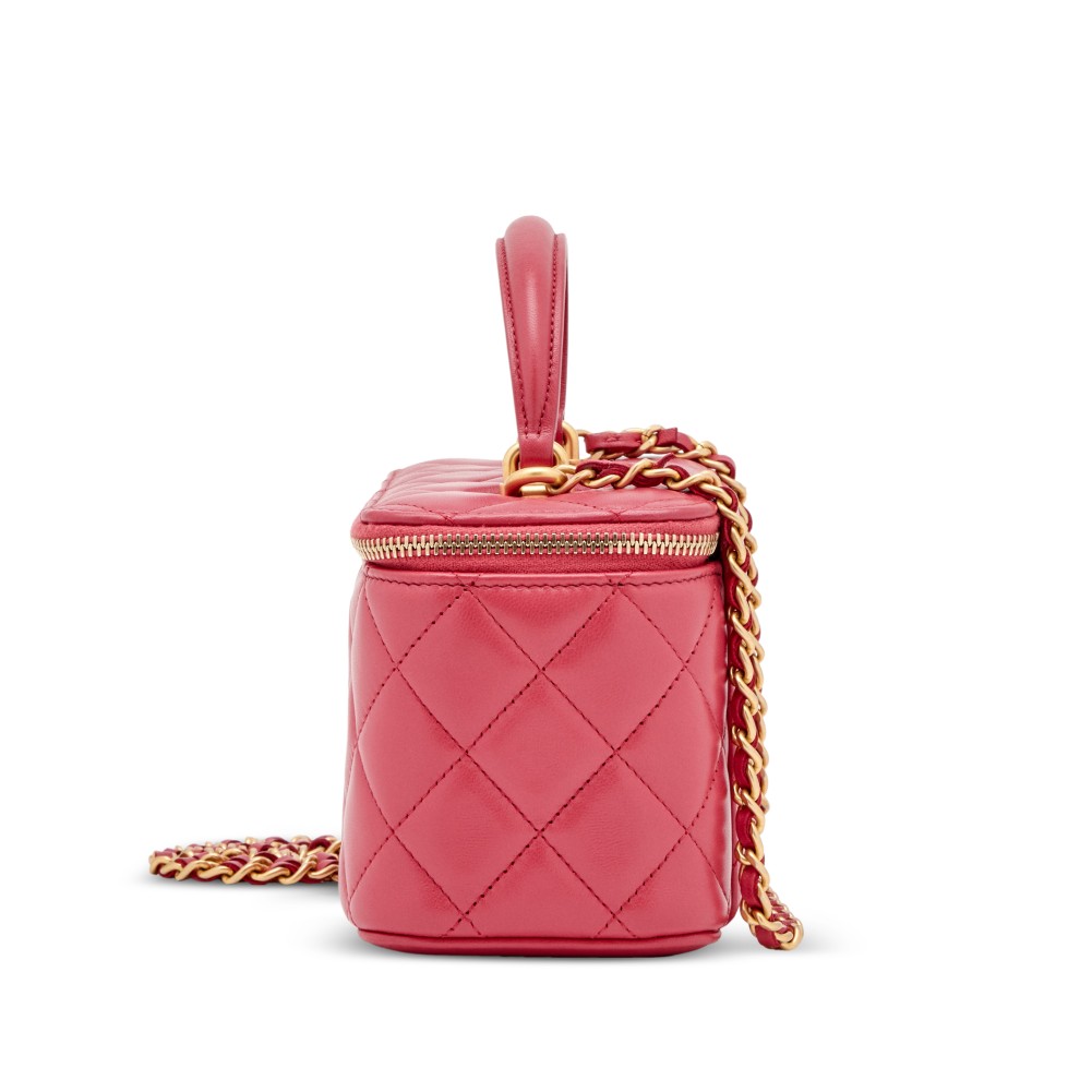 Chanel Dark Pink Quilted Lambskin Top Handle Vanity Bag Aged Gold Hardware, 2021