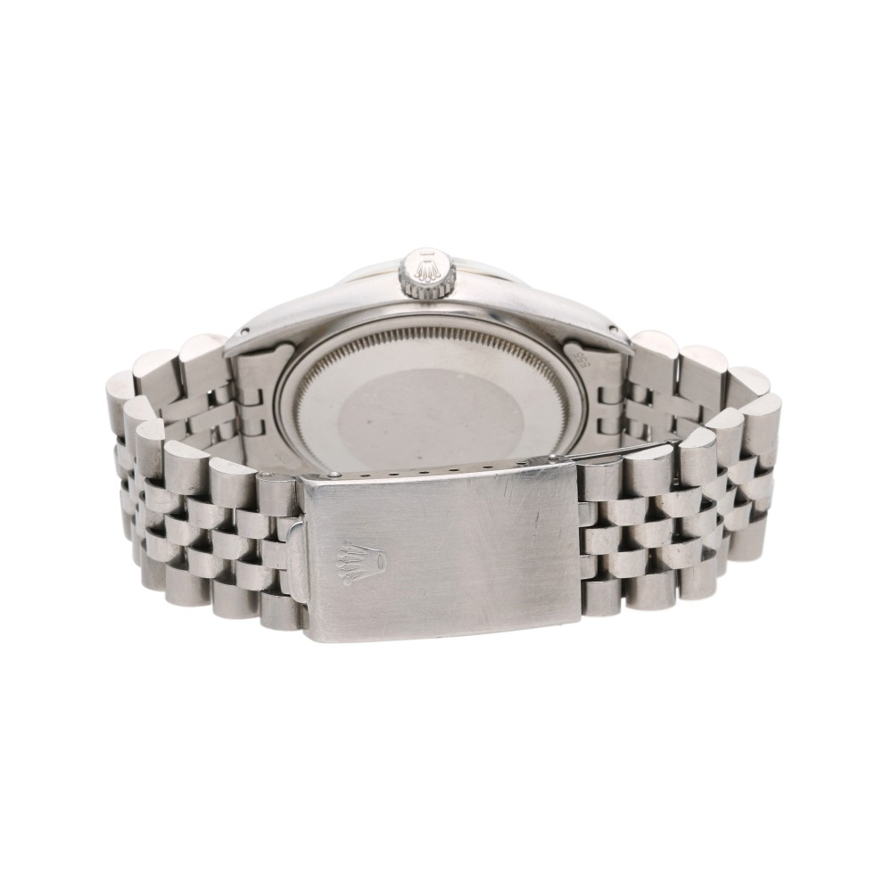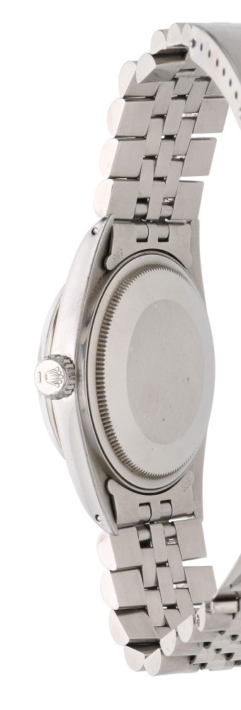 The 1601 has a non-quickset movement; therefore, to set the date, the crown must be wound continuously as the center hands of the dial go around, till the time passes midnight and the correct date appears in the window. Complemented by a rare silver pie-pan dial, which gained popularity in the ’60s and ’70s. The beveled outer ring resembles an inverted cake pan.