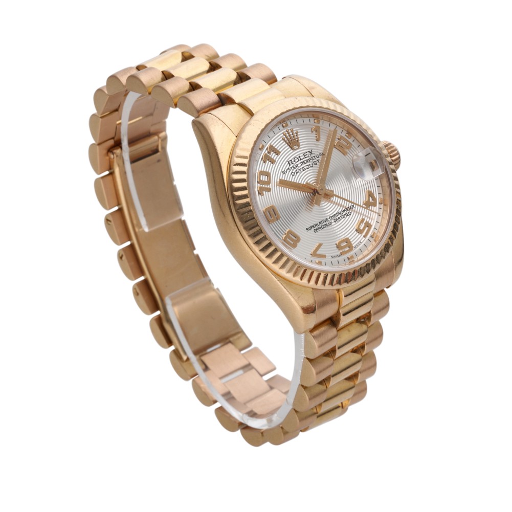 As a release in 1945 to commemorate Rolex?s 40th anniversary, the Datejust surpassed its predecessors by being the first automatic wristwatch with an automatically changing date window at midnight. The Oyster case introduced in 1926 offered a resolution to an unaddressed need: resistance to water. With such groundbreaking features, the Datejust quickly became one of the world?s most popular luxury timepieces.