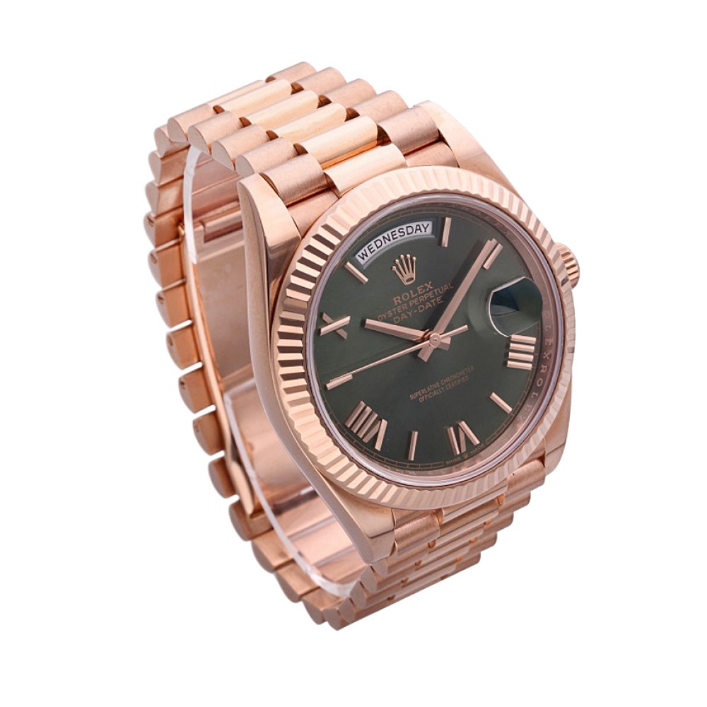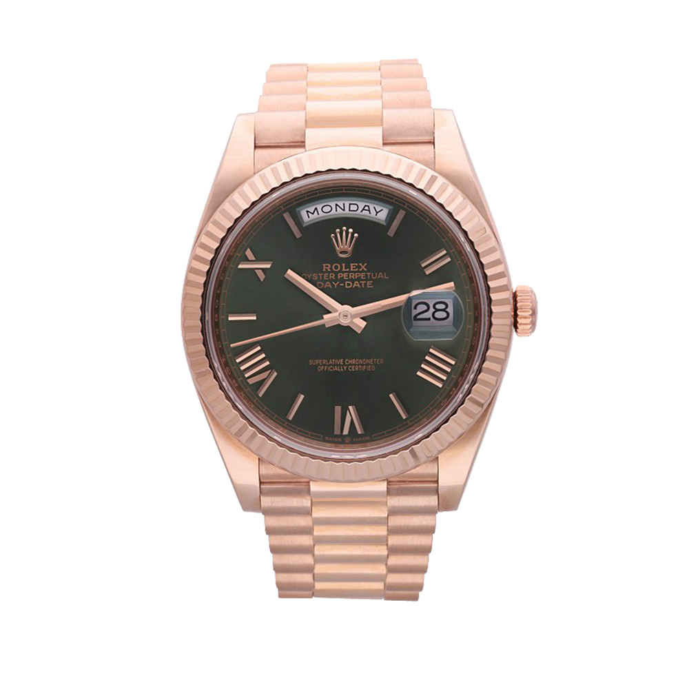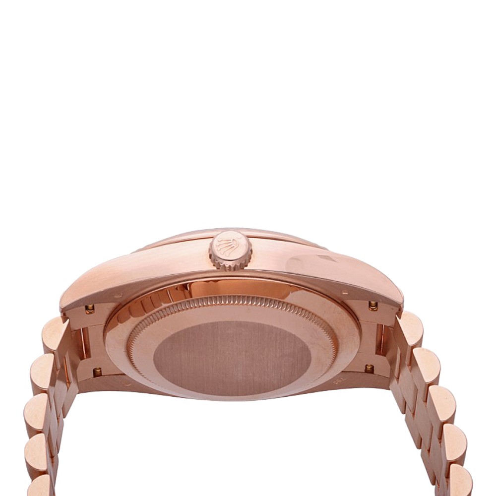 The iconic Day-Date model was launched in 1956 and became quickly known under the “President” name as it was a go-to watch for many presidents. The piece presented today was launched for the 60th anniversary of the Day-Date in 2016, and it features a pink gold case and bracelet as well as a green dial with applied pink gold Roman numerals.