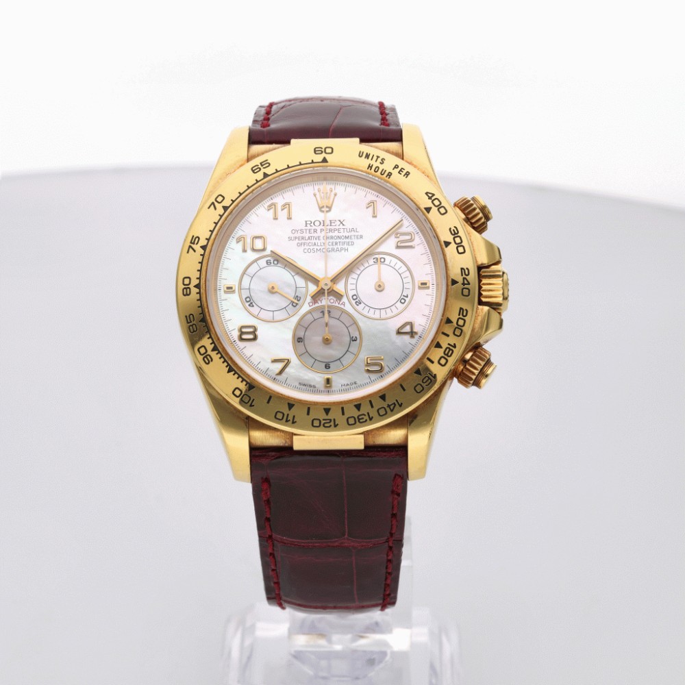 After 25 years of the manual winding Daytona, the introduction of the automatic reference 16520 was the most important evolution in the history of the celebrated model. The watch was completely redesigned and was fitted with the new caliber 4030, based on the Zenith El Primero. Even if the 16520 was produced for only a dozen years, the model saw several developments, mainly consisting of the layout of the dial. In fact, five different changes have been identified, and the present lot is part of the third iteration distinguished by the five lines of text and the “inverted 6” within the hours chronograph counter.