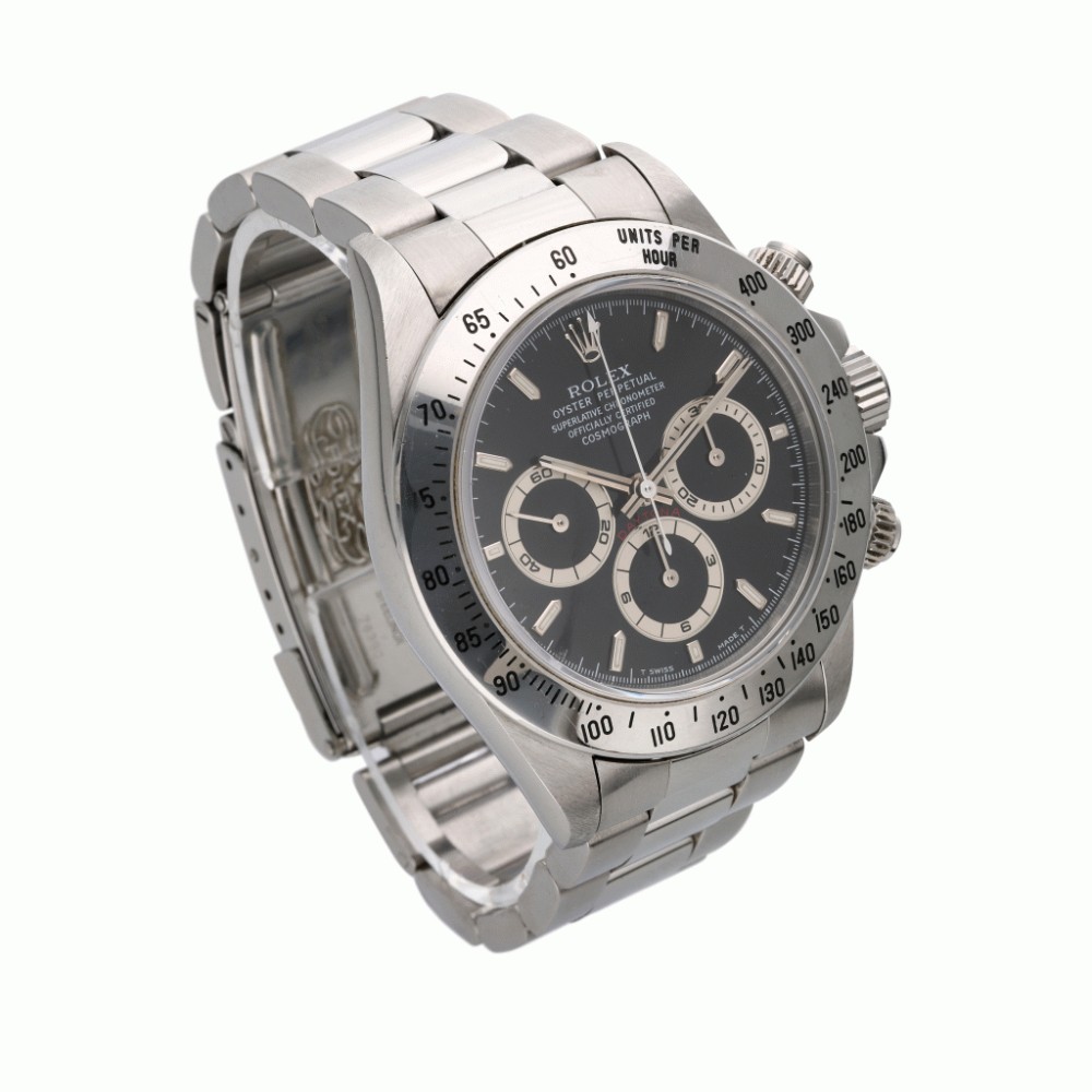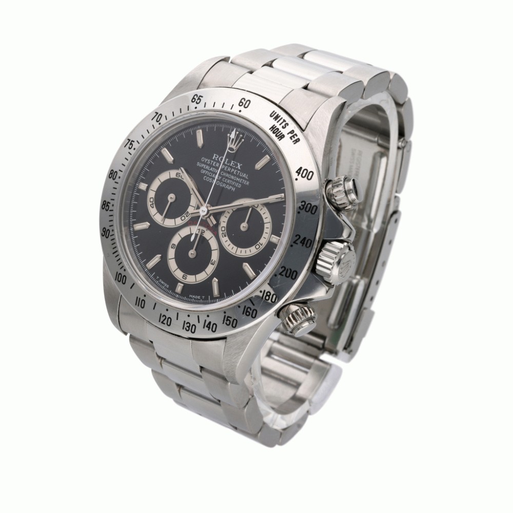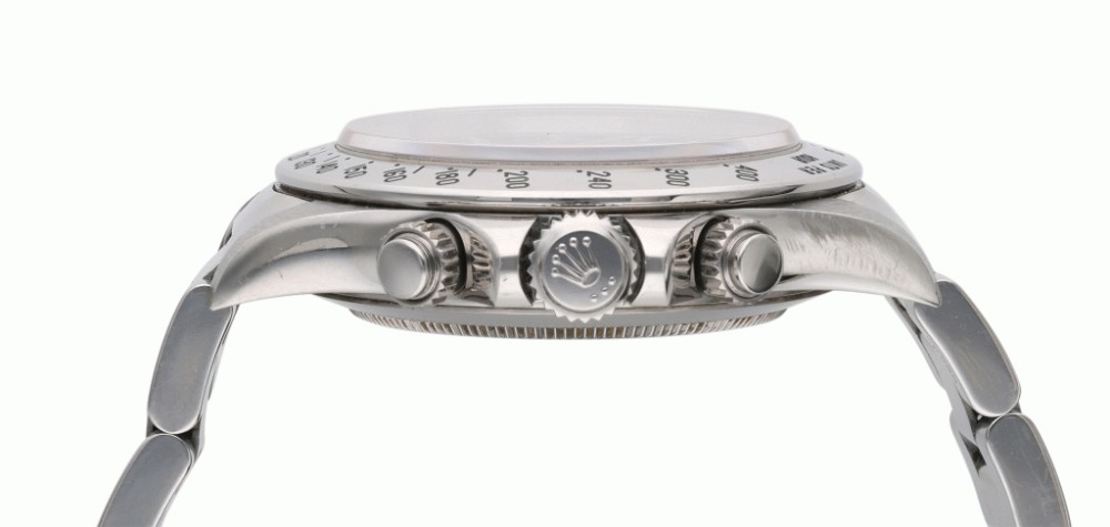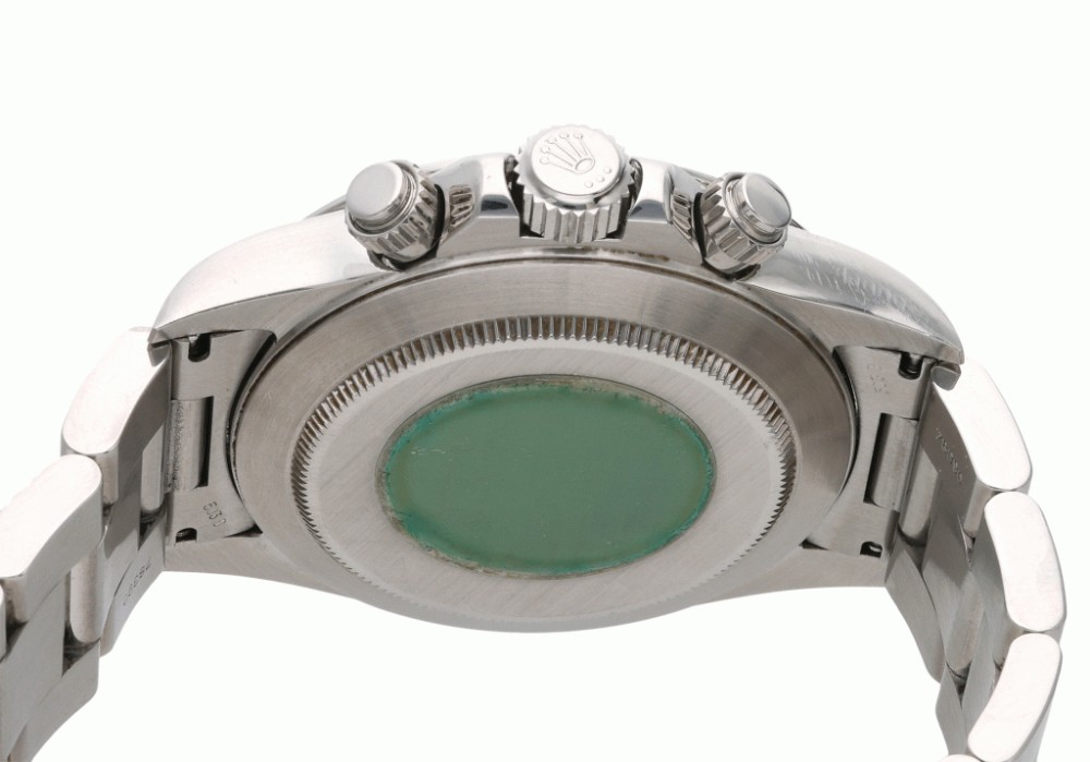 After 25 years of the manual winding Daytona, the introduction of the automatic reference 16520 was the most important evolution in the history of the celebrated model. The watch was completely redesigned and was fitted with the new caliber 4030, based on the Zenith El Primero. Even if the 16520 was produced for only a dozen years, the model saw several developments, mainly consisting of the layout of the dial. In fact, five different changes have been identified, and the present lot is part of the third iteration distinguished by the five lines of text and the “inverted 6” within the hours chronograph counter.