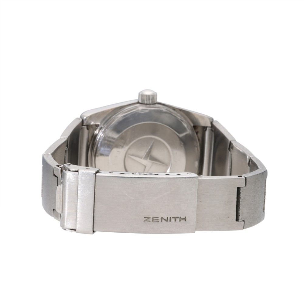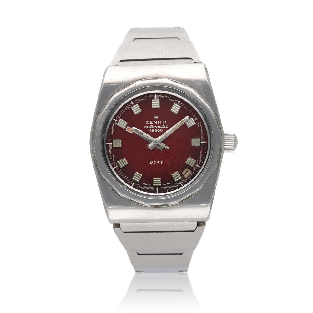 Originally released in 1969 alongside the El Primero collection, the Defy disrupted the scene with its unusual octagonal-shaped case and 14-sided bezel. This example dates back to the 1970s. The “28800” on the dial refers to the high-frequency movement, meaning the movement beats 28,800 beats per hour.
