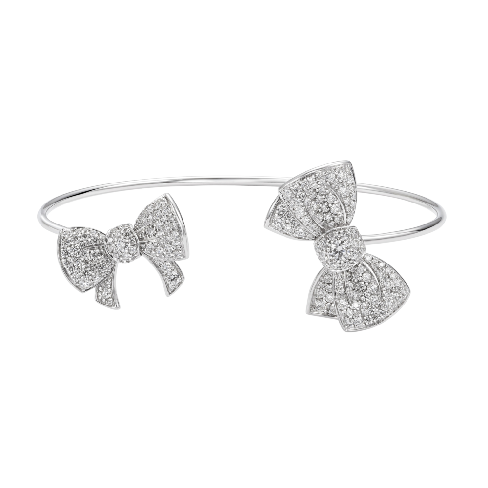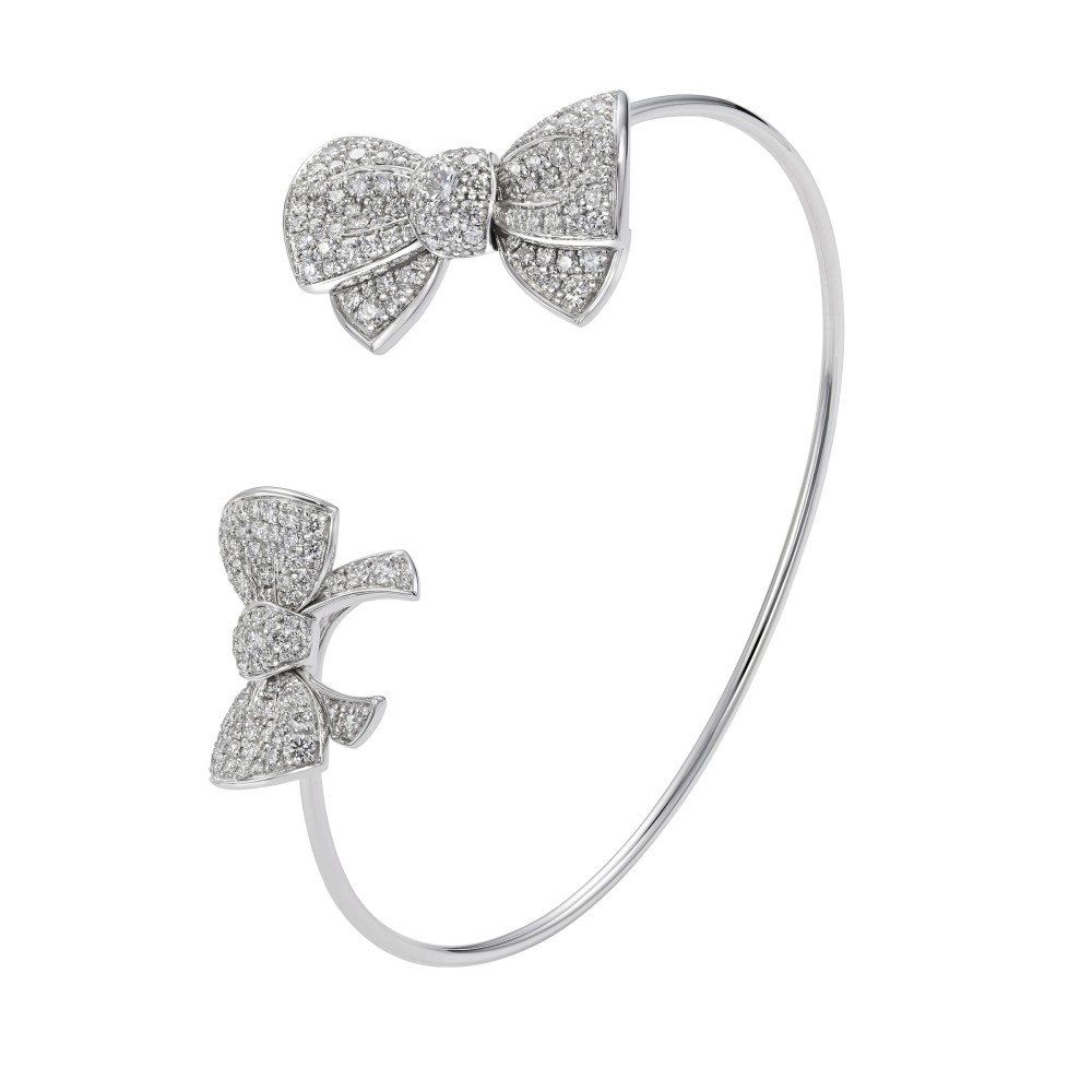 Bangle designed as a pair of bows with micro-set diamonds, set in white gold.