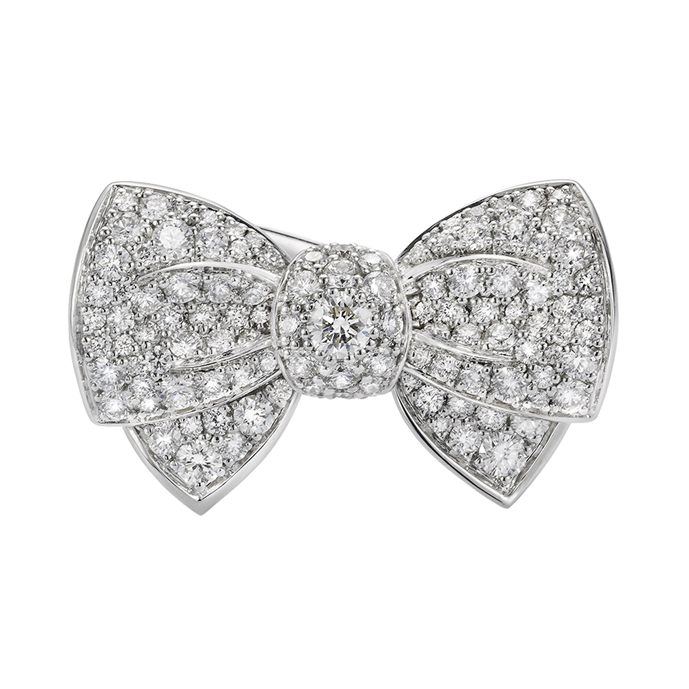 Ring designed as a bow with white micro-set diamonds, set in white gold.