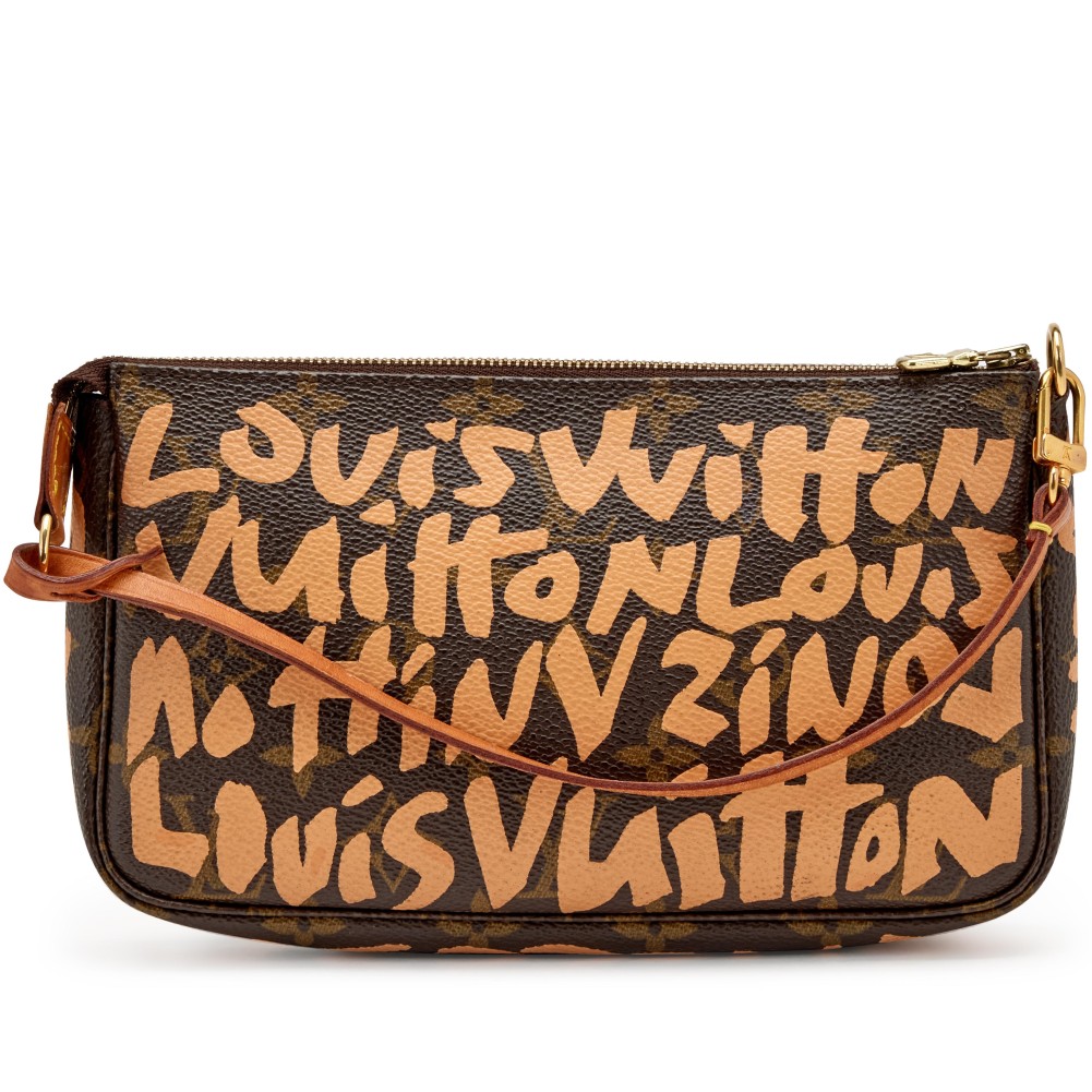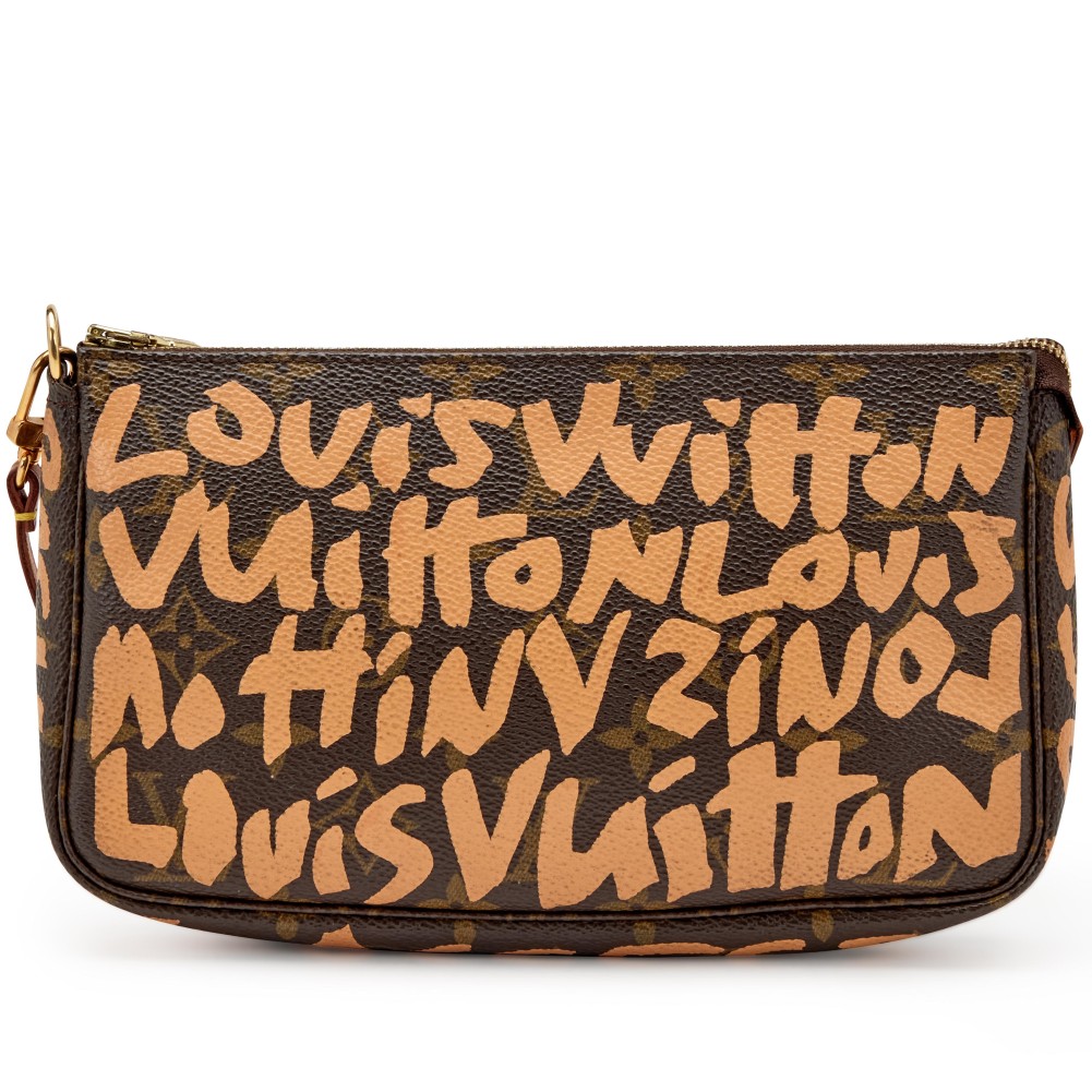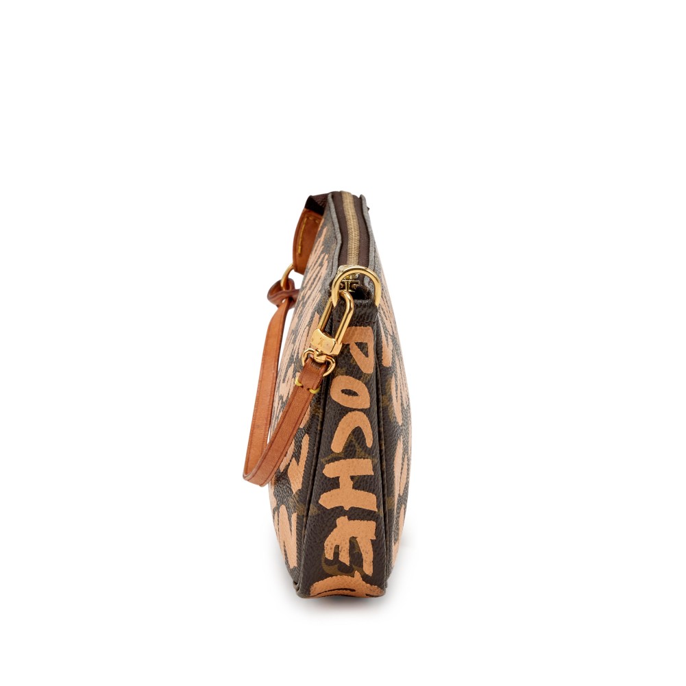 Louis Vuitton Ebene and Beige Monogram Graffiti Coated Canvas Pochette Gold Hardware, 2001