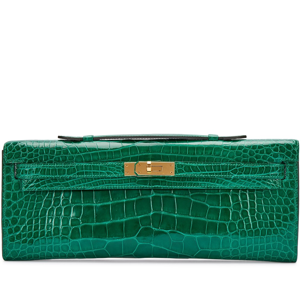Herm?s Emerald Shiny Alligator Kelly Cut Gold Hardware, 2017