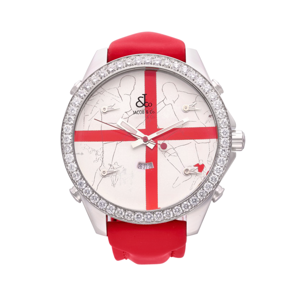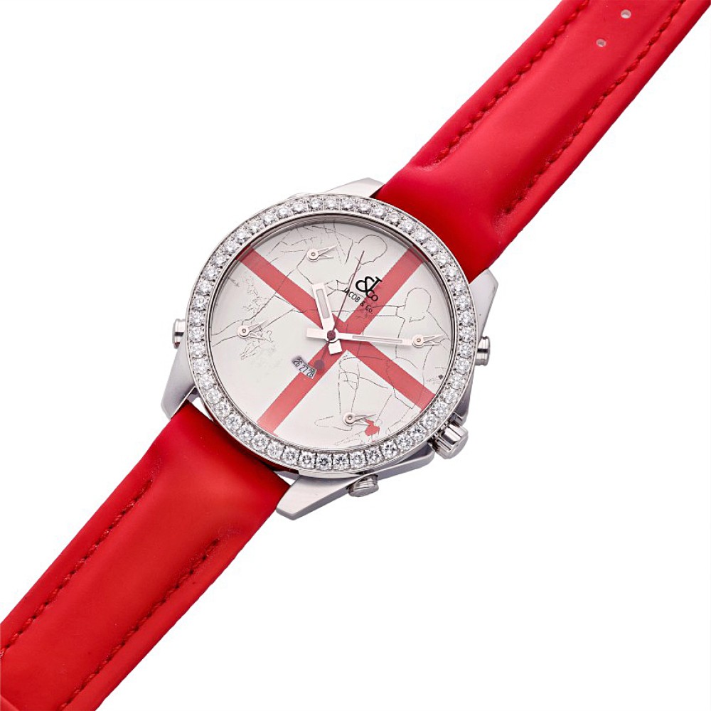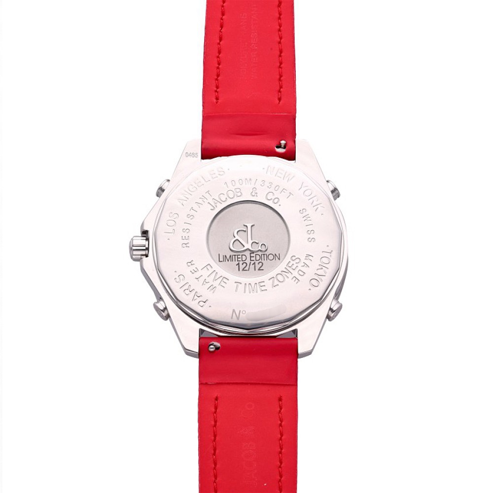The Five Time Zone is one of the most iconic models in the Jacob & Co catalogue. The watch presented today is part of a limited edition of only 12 pieces in stainless steel. The timepiece features a diamond bezel and an intricately designed Swiss soccer white dial as well as independent timezones for New York, Los Angeles, Paris, and Tokyo.