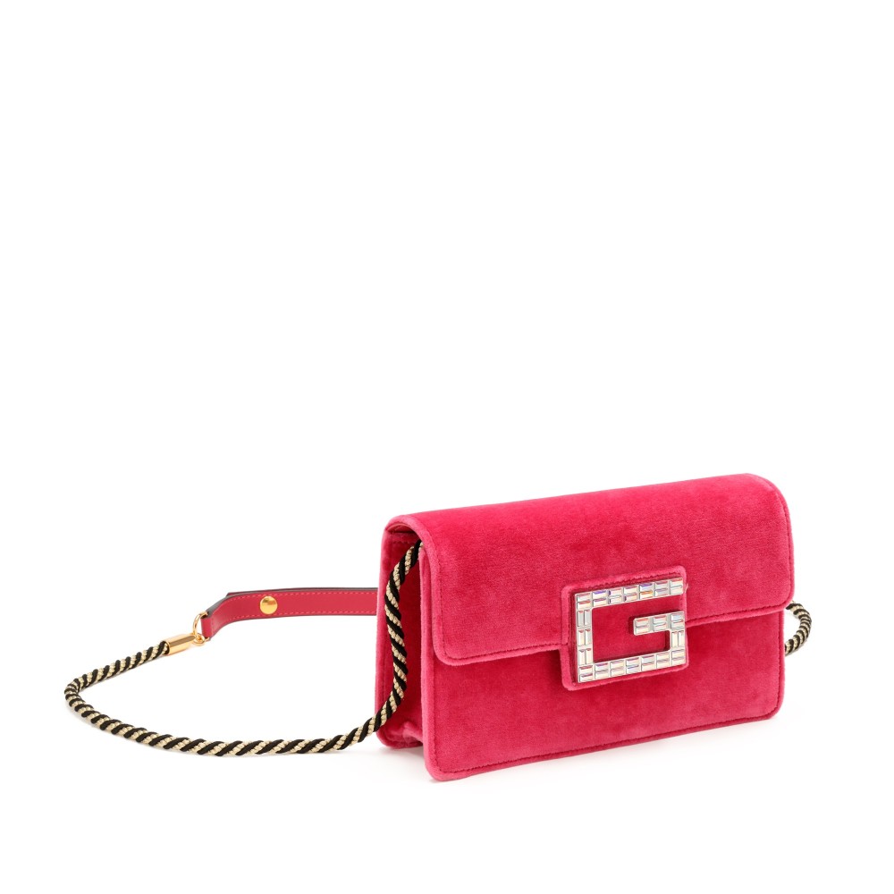 Gucci Fuchsia Velvet Small Broadway Shoulder Bag Rope and Crystal Hardware