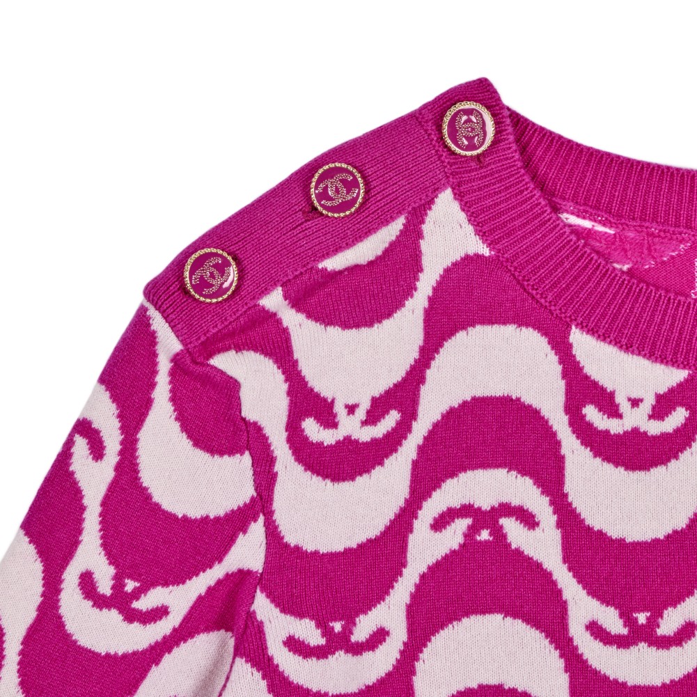 Chanel Fuchsia Wavey Striped Cashmere Sweater, 2021