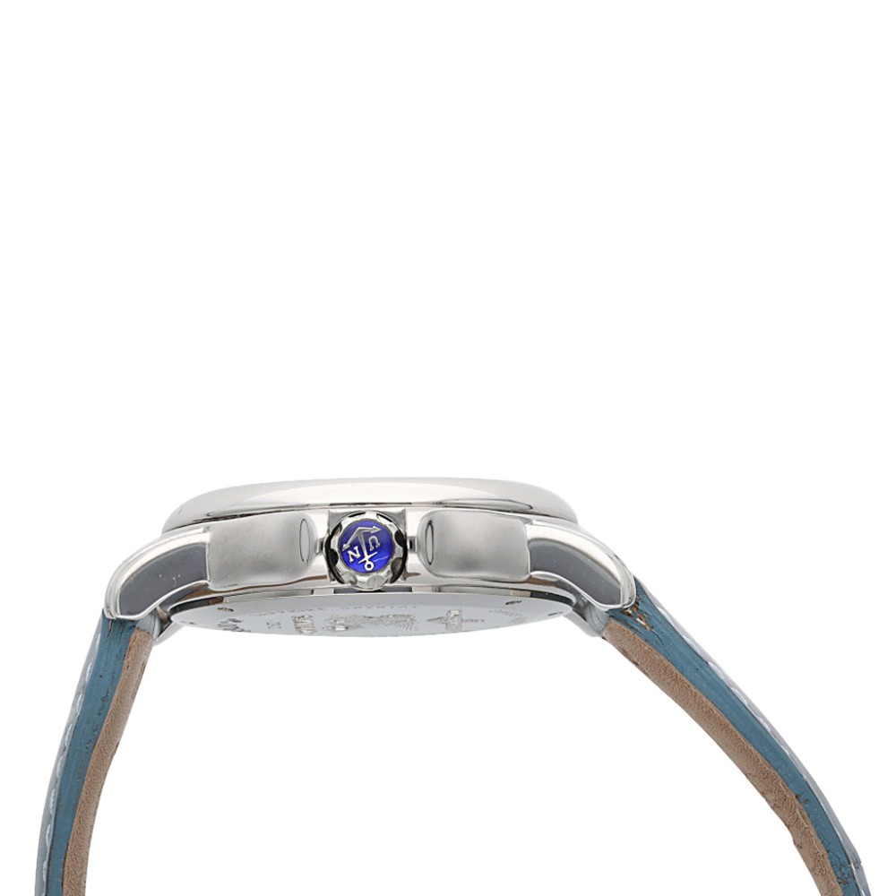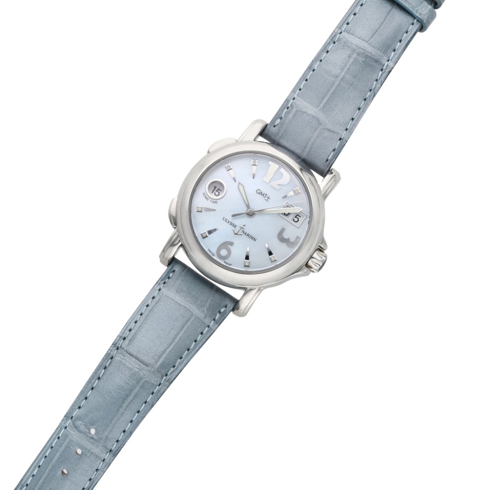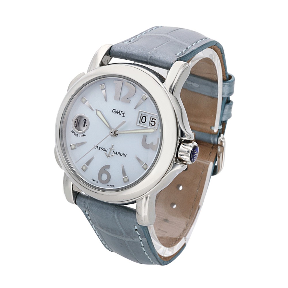 In 1994, Ulysse Nardin designed the GMT? with the plus and minus pushers on the side of the watch to adjust the hour hand to add another local time, which is called the “Home Time” window, located at 9 o’clock. The Home Time shows 1 to 24, so it will be easier to read whether it is a.m. or p.m.