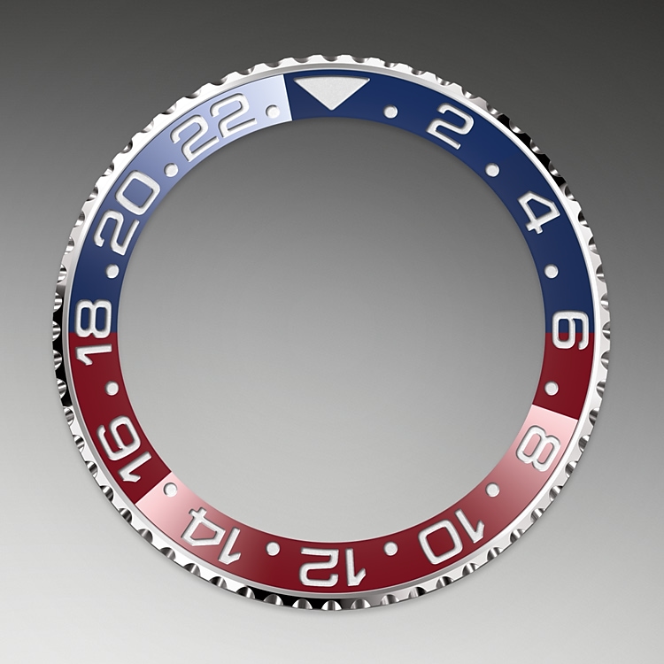 This model features a meteorite dial and a two-colour Cerachrom bezel insert in red and blue ceramic. In addition to conventional hour, minute and seconds hands, the GMT-Master II features an arrow-tipped hand, which circles the dial once every 24 hours, as well as a bidirectional rotatable 24-hour graduated bezel. The distinctively coloured 24-hour hand displays the ?home? reference time in a first time zone which can be read on the graduations on the bezel. The traveller?s local time is easily set by ?jumping? from hour to hour, thanks to an ingenious mechanism operated via the winding crown: the hour hand can be adjusted forwards or backwards independently of the minute and seconds hands. This allows travellers to adapt to their new time zone without affecting the precision of their timekeeping.