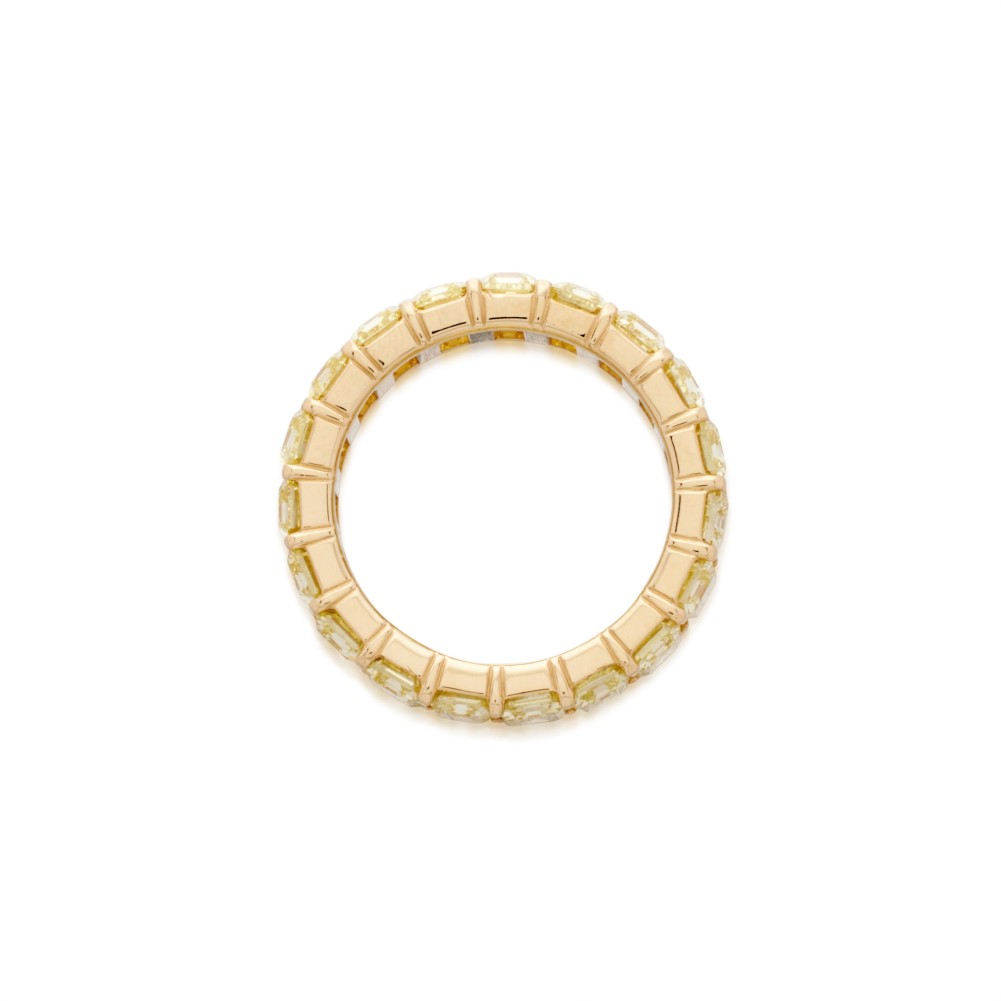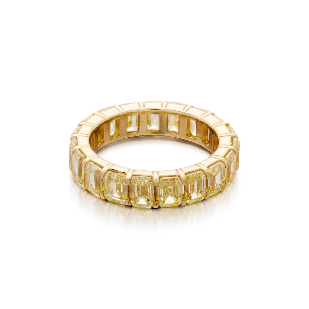 Composed of continuously set emerald-cut yellow diamonds.