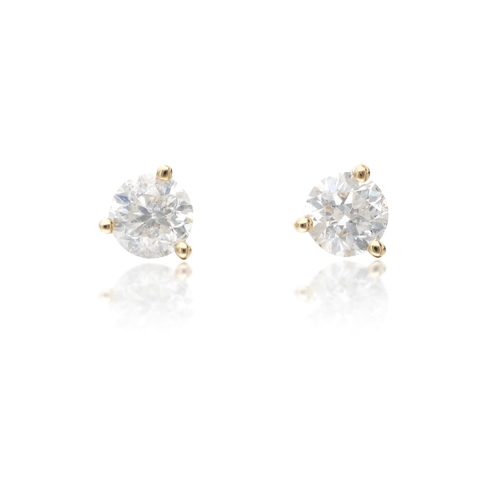 Set with 2 round brilliant-cut diamonds in a 3-prong setting.