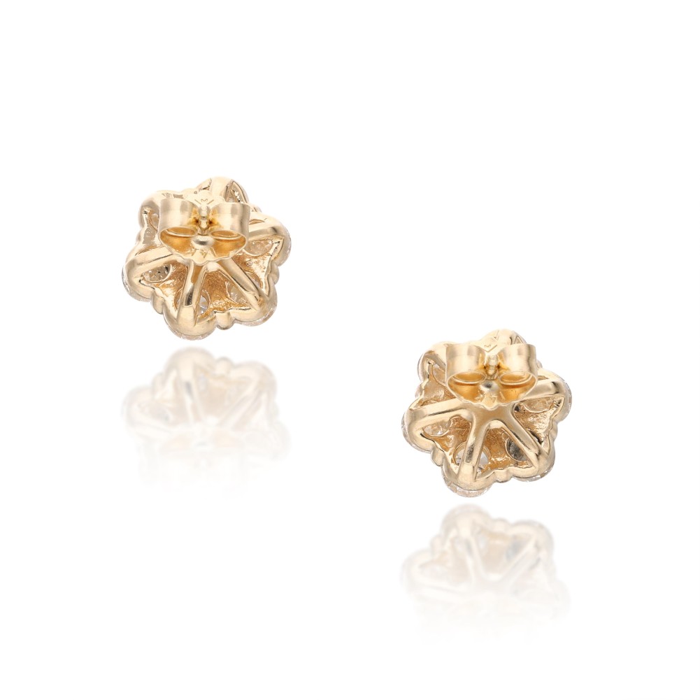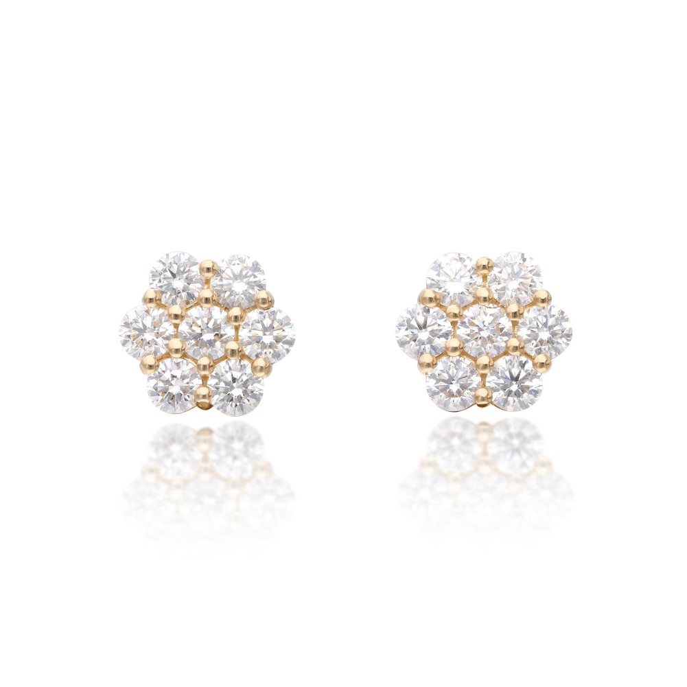 Set with 14 round brilliant-cut diamonds in a flower design.