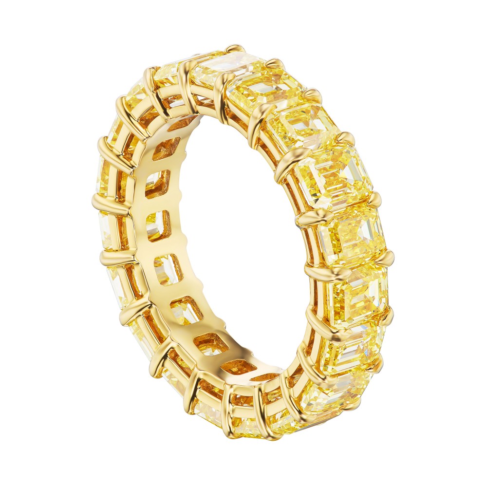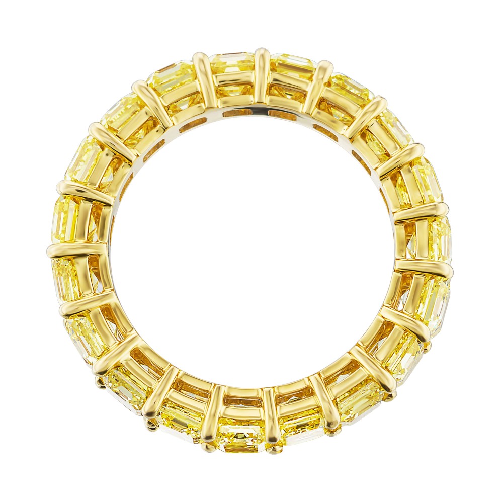 Set with emerald cut Fancy Intense Yellow and Fancy Vivid Yellow Diamonds.