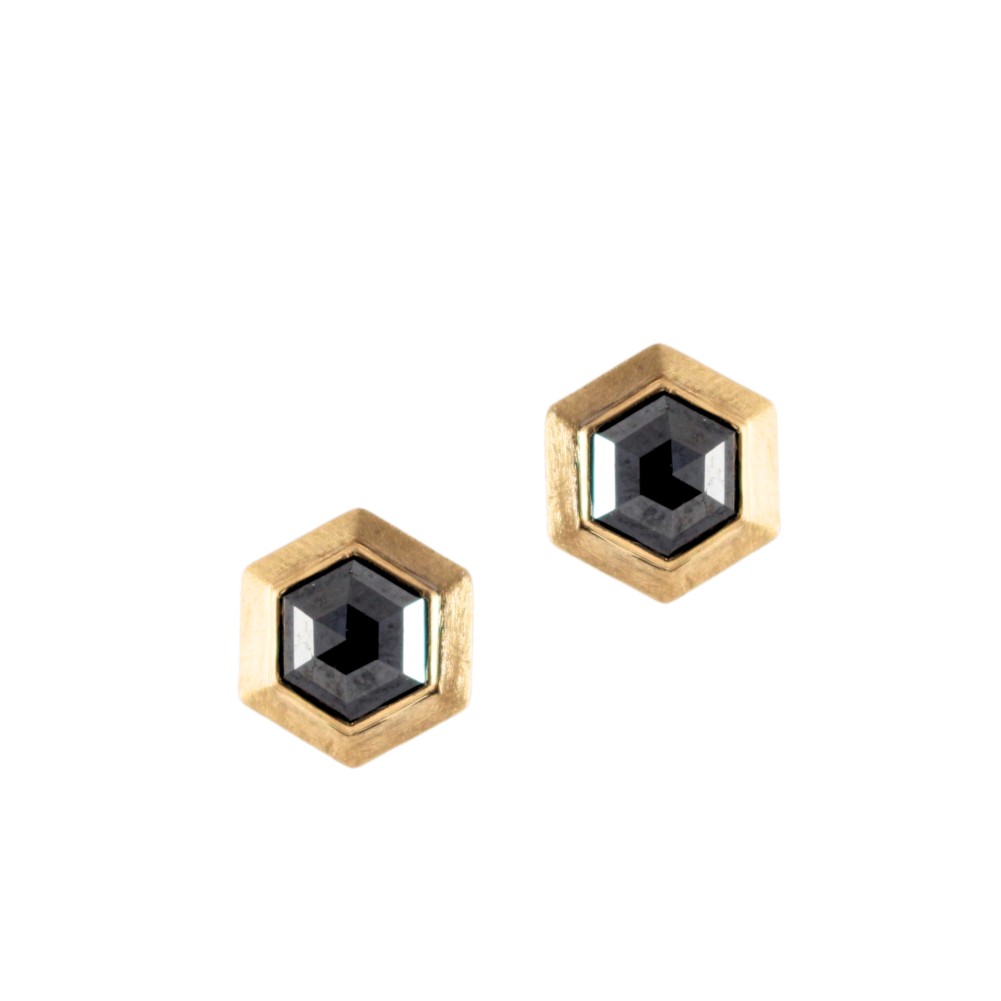 - Hexagon-shaped black diamonds weighing a total of approximately 1.75 carats