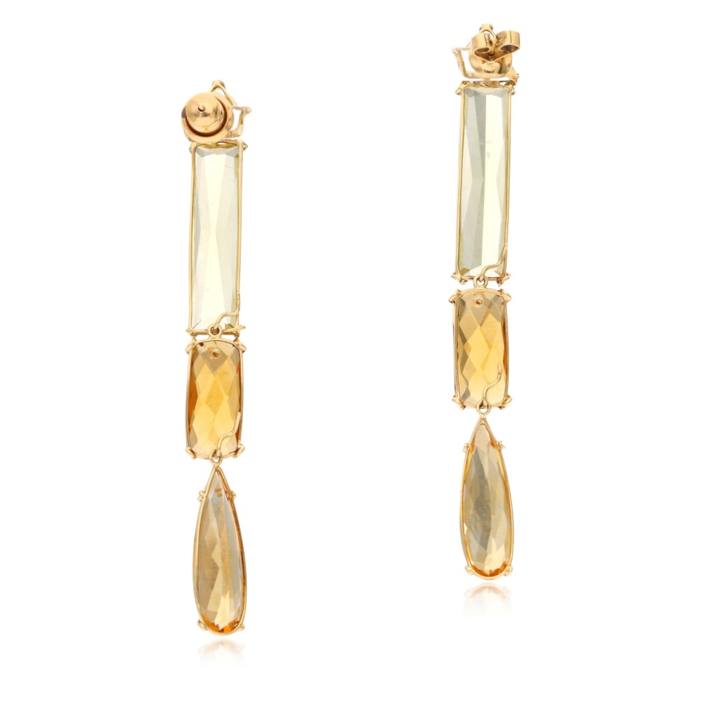 Composed of cushion, pear, rectangle and triangle-shaped citrine with two removable links.