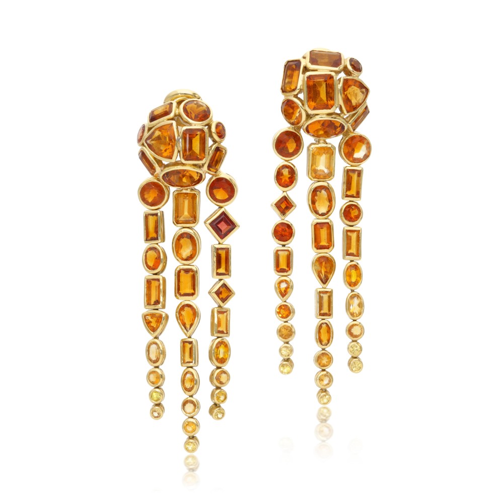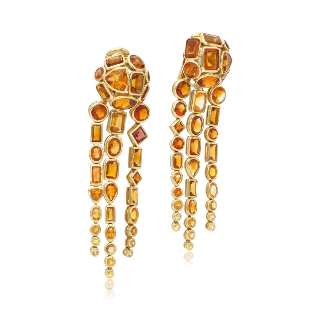 Composed of round, oval, square, triangle, emerald and rectangular-shaped citrines.