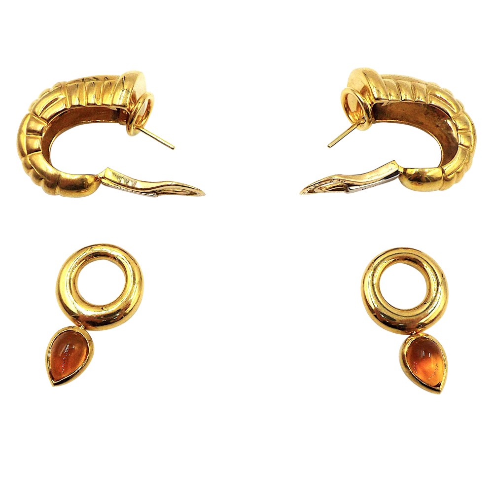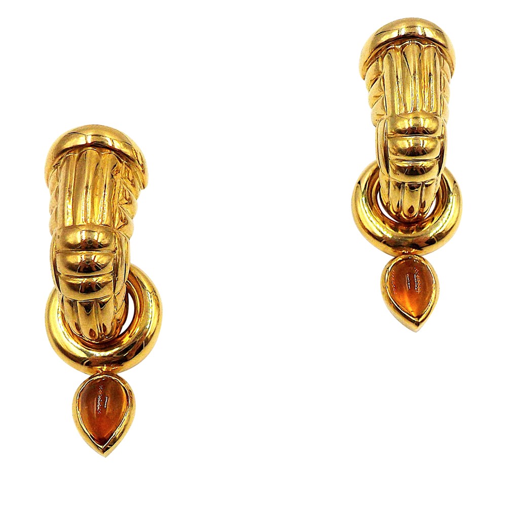 Set with 2 pear-shaped cabochon citrines.