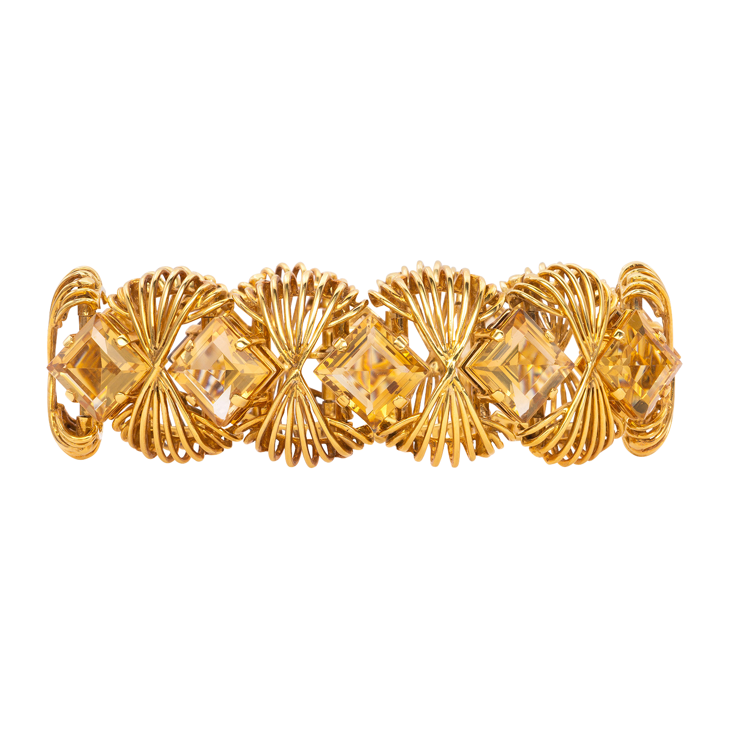 Flexible link bracelet featuring 10 square cut citrine.