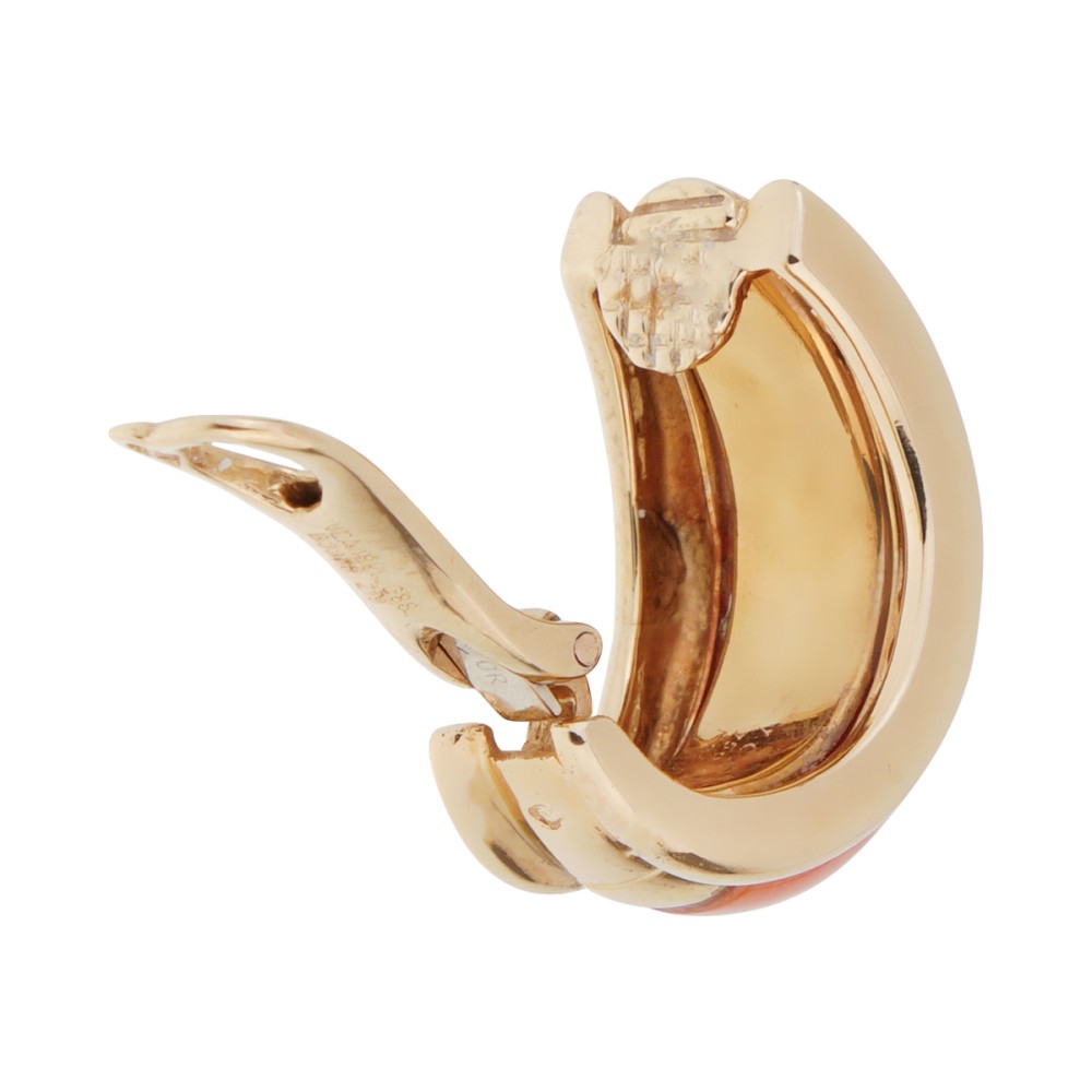 The hoop earrings designed as coral bands set between gold bands.