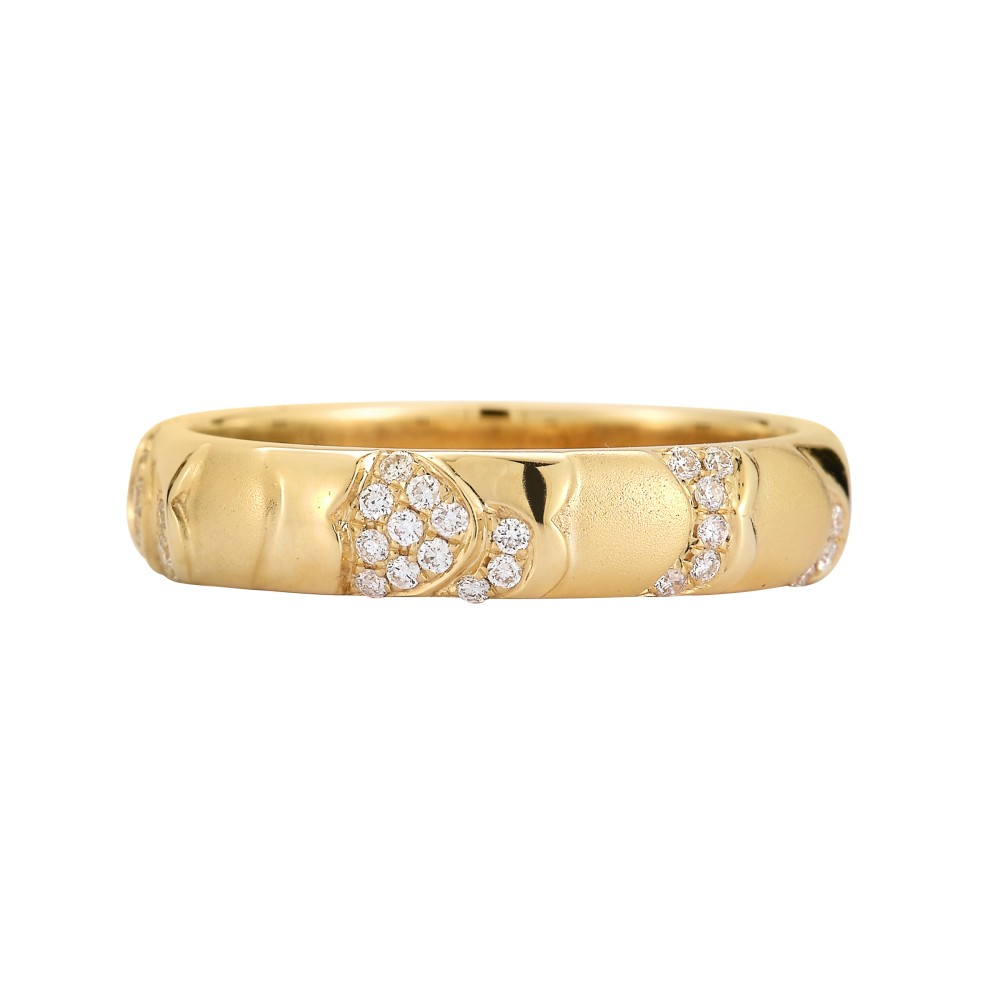 Composed of brushed and polished gold, accented by round diamonds.