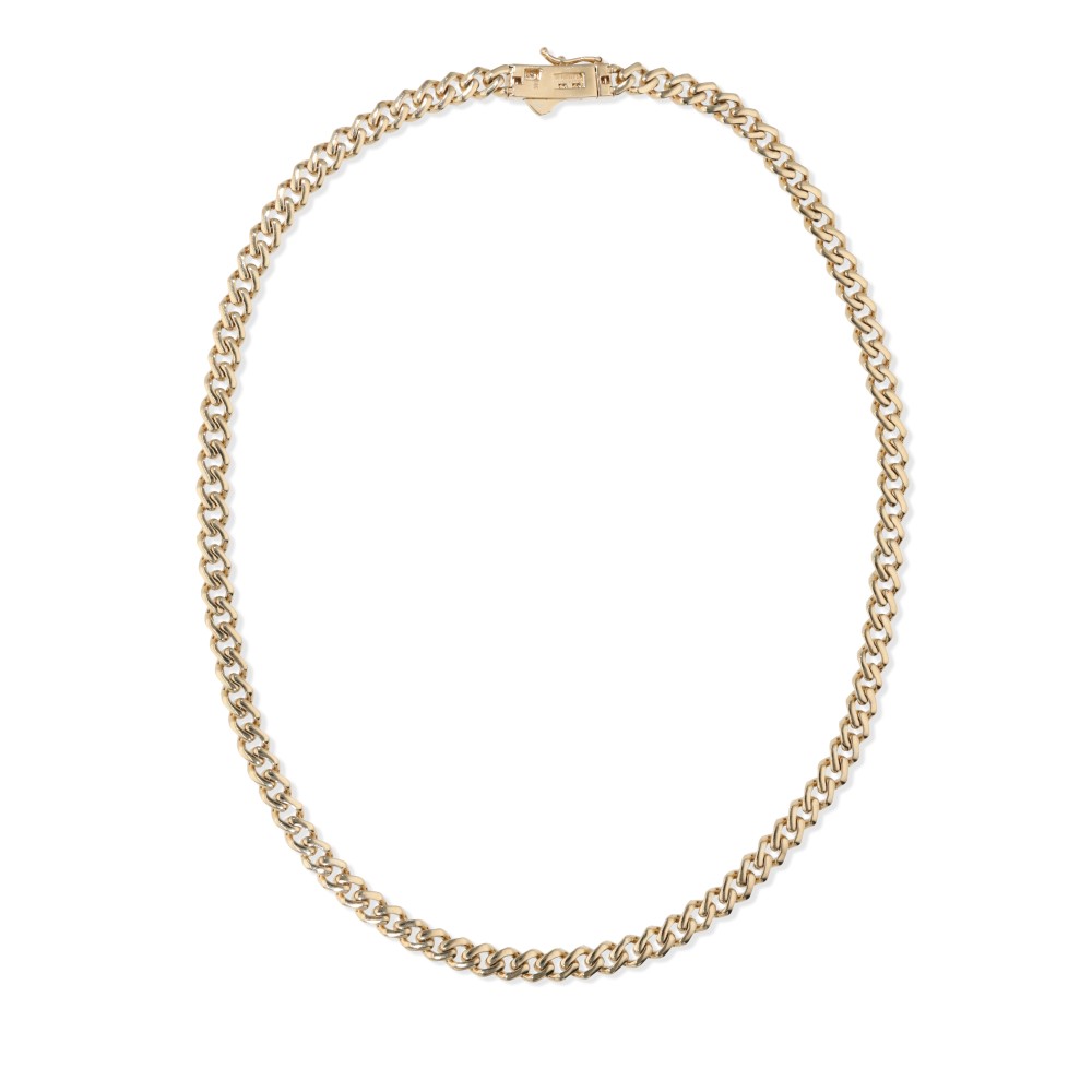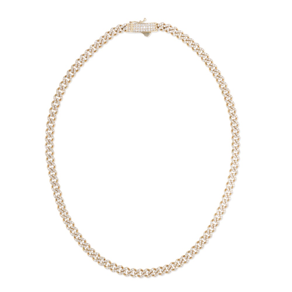 of a curb link pav? set with round diamonds.