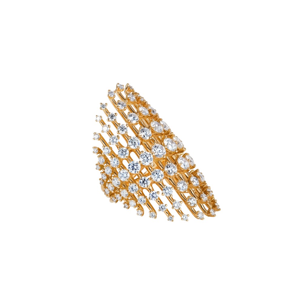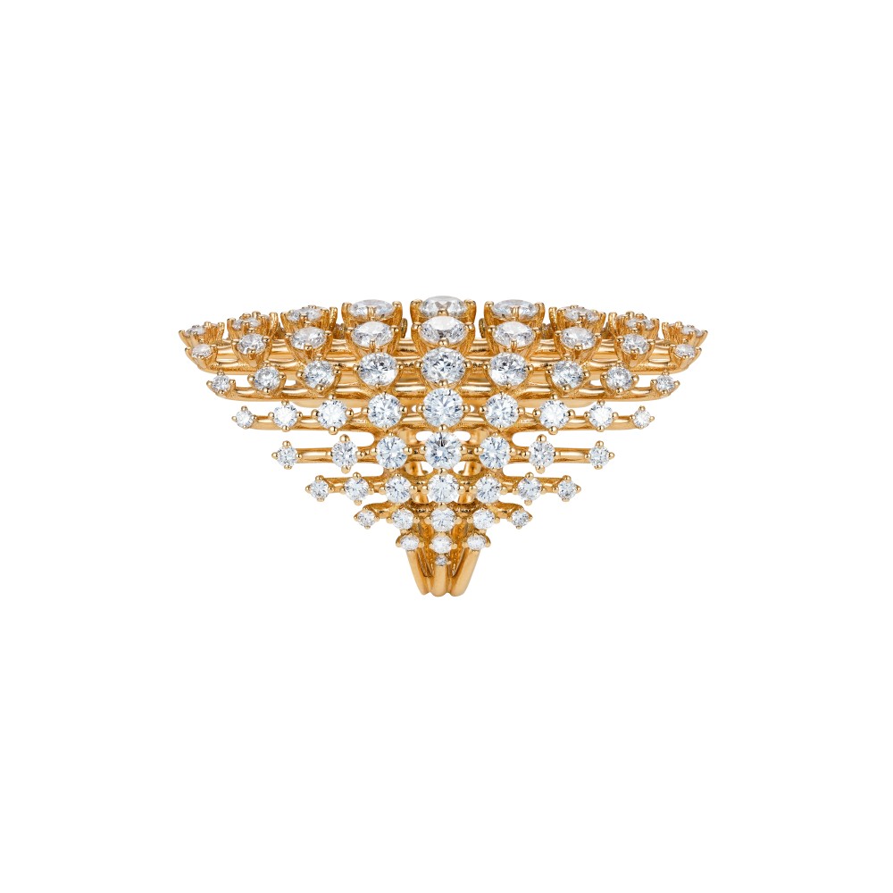 Composed of parallel gold bar in graduated length, set with round brilliant-cut diamonds.
