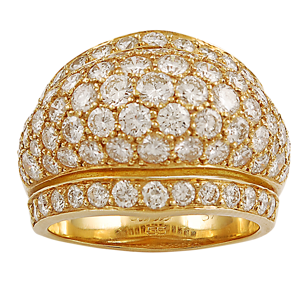 Of domed diamond pav? with 2 borders, set with round diamonds.