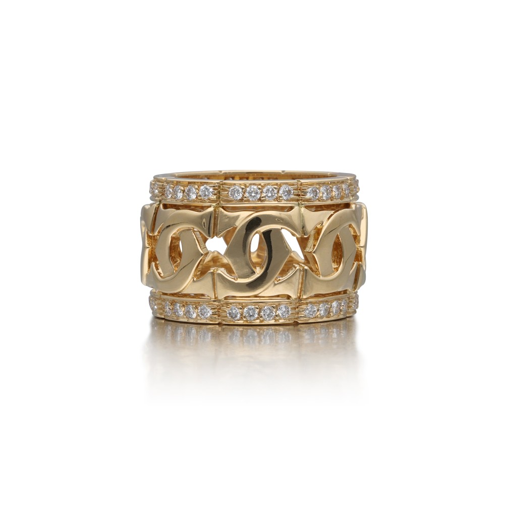 Of iconic Entrelac?s C de Cartier design, accented by 64 round brilliant-cut diamonds.
