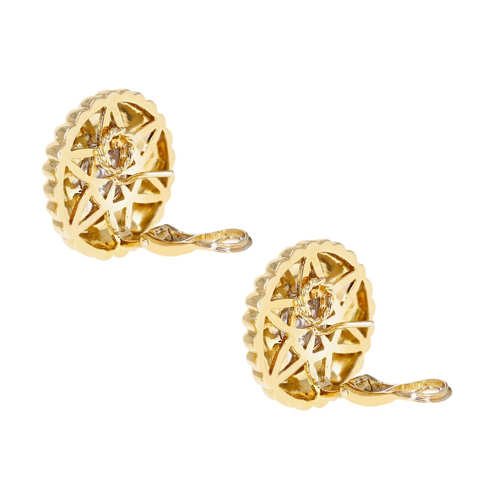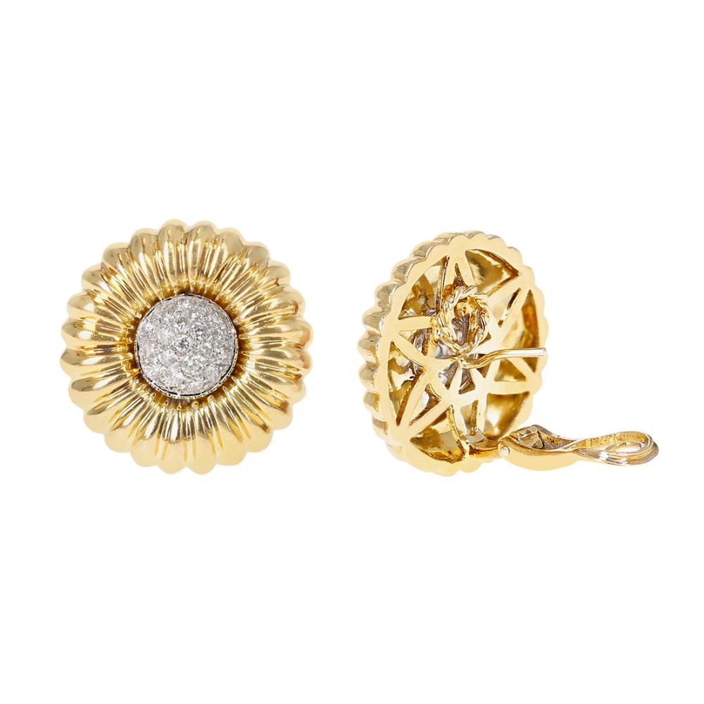 Designed as a flower with pav?-set diamonds at the center.