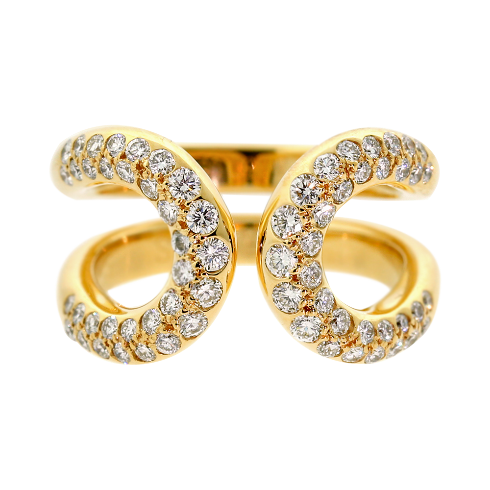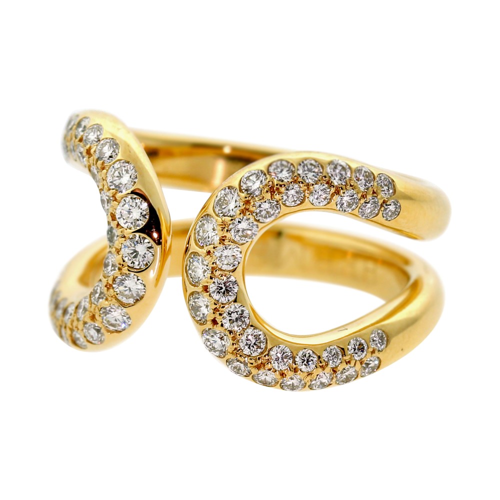 Designed as a stylized H, a portion of the ring pav? set with diamonds.