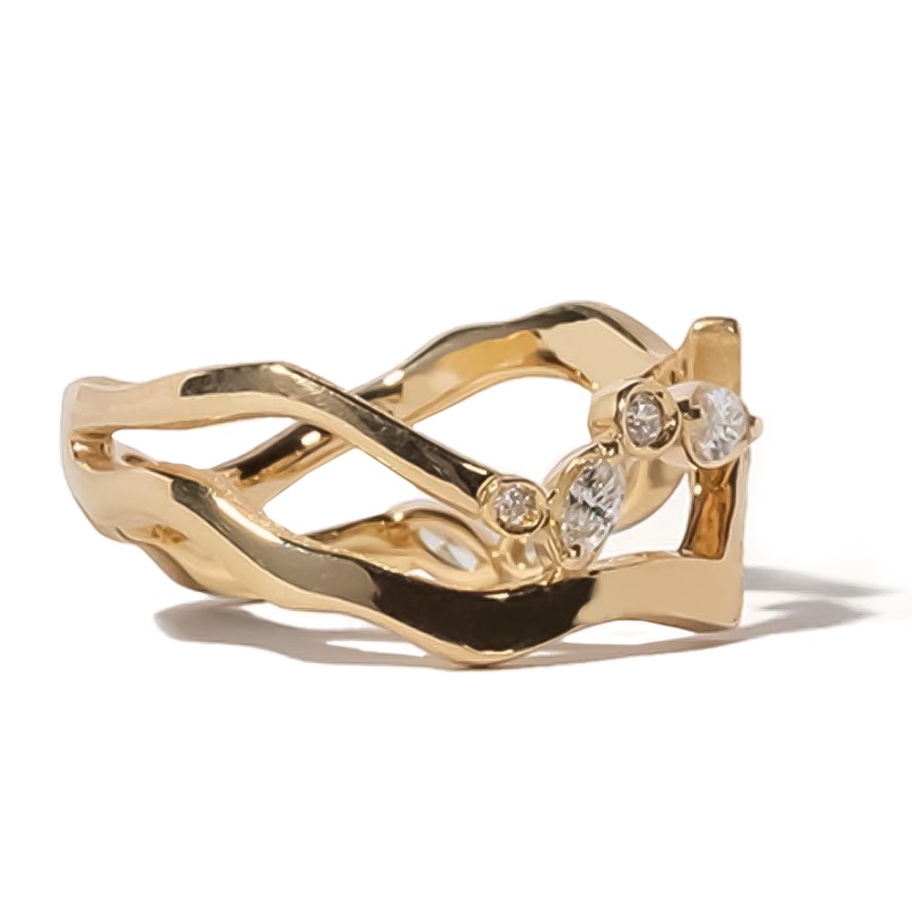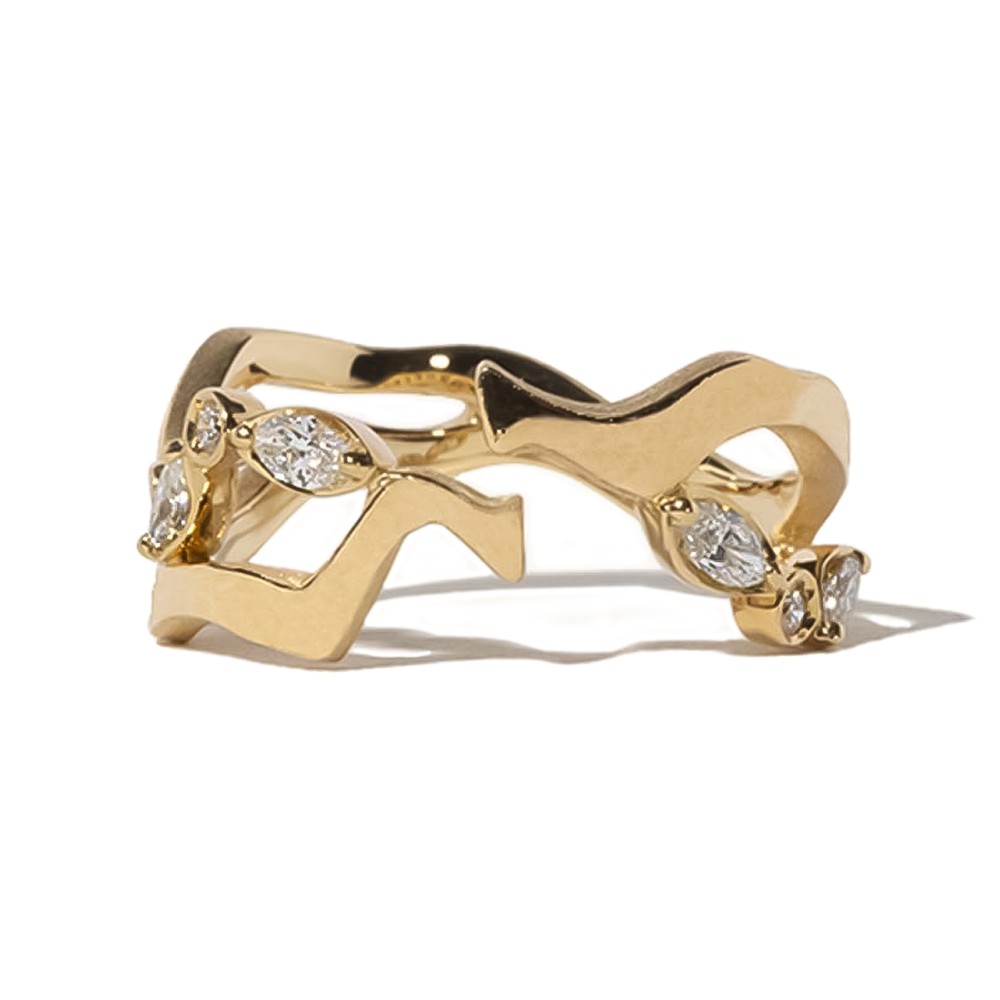 Of an organic design, set with round diamonds and marquise-cut diamonds.