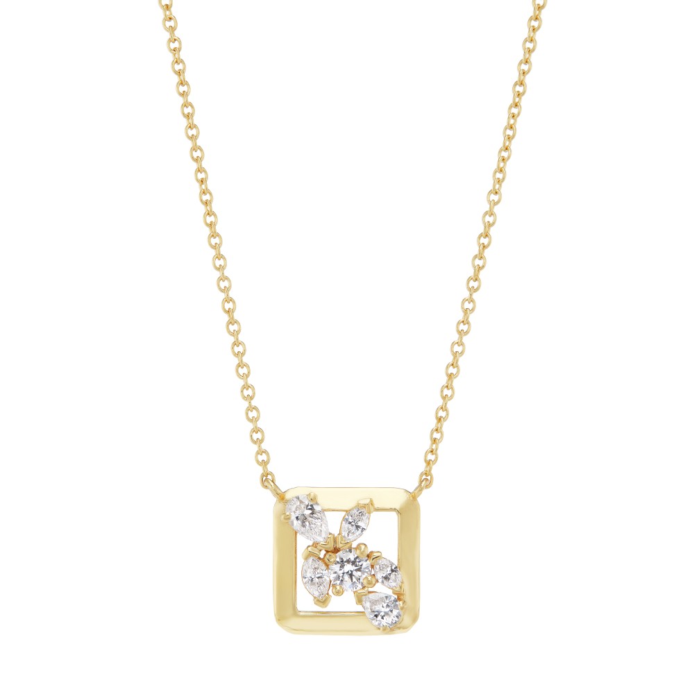 Set with 3 marquise-shaped diamonds, 2 pear-shaped diamonds and 1 round diamond.