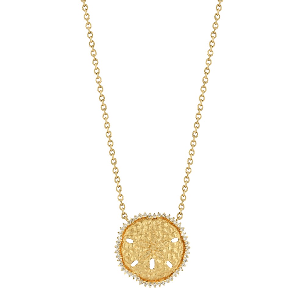 Composed with hammered gold, accented by round diamonds.