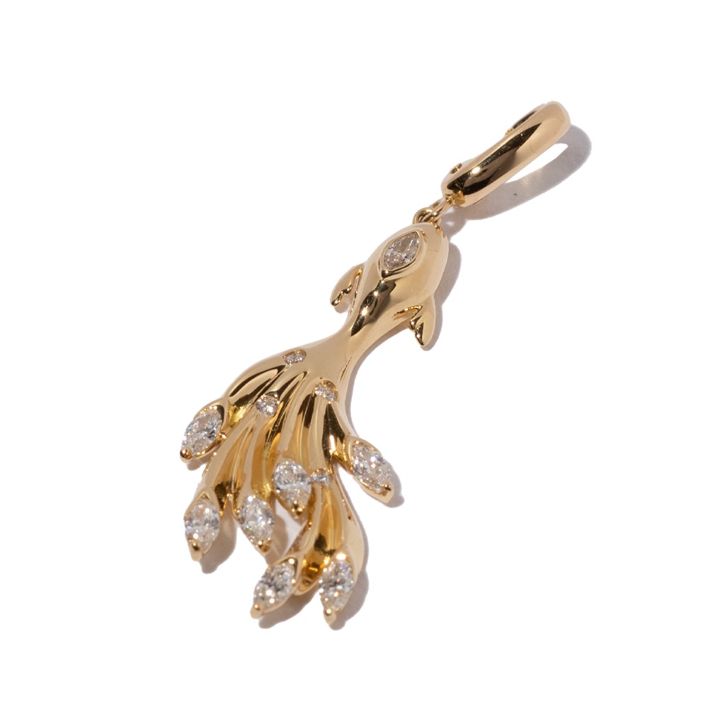 Designed as a goldfish, set with marquise-cut diamonds and round diamonds.