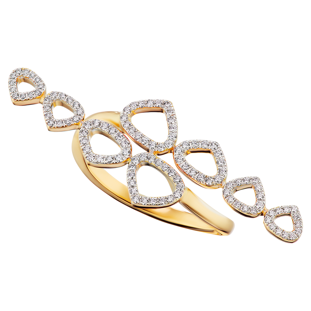The ring of toi et moi design, featuring 8 rounded triangles pav? set with diamonds.
