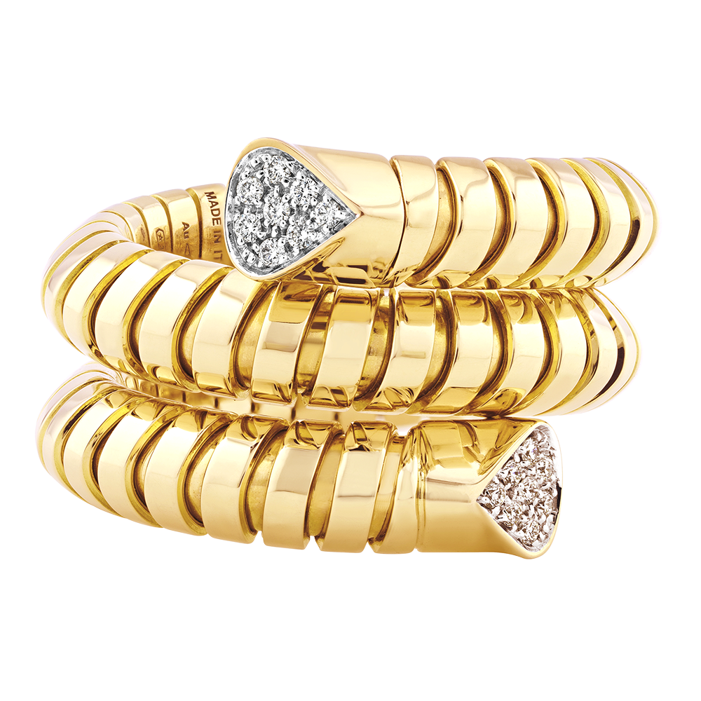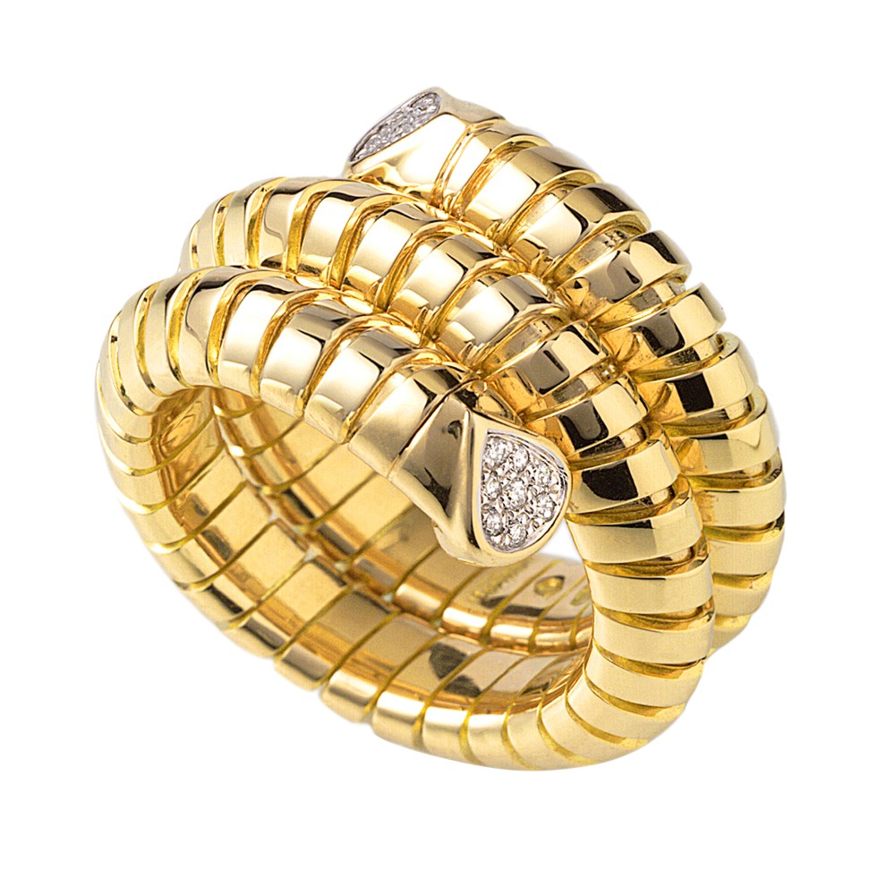 Trisola ring set with diamonds.
