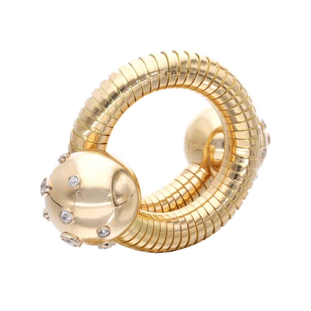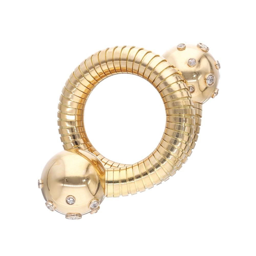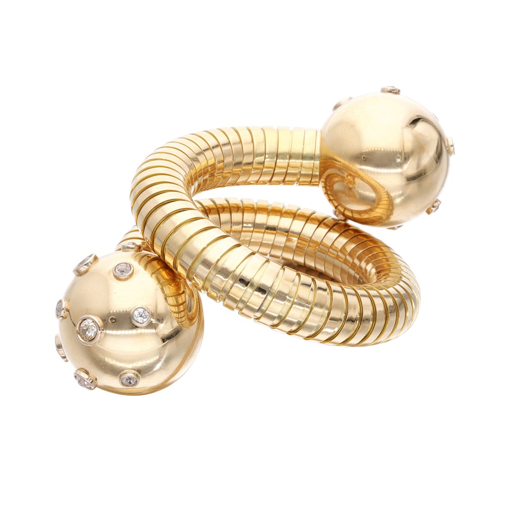 Composed of European and Old Mine-cut diamonds set into a flexible tubogas bracelet.