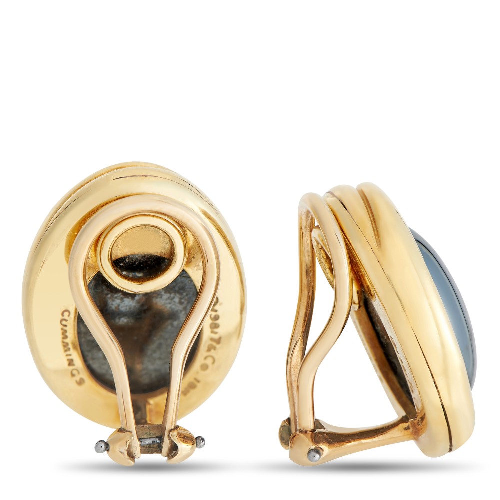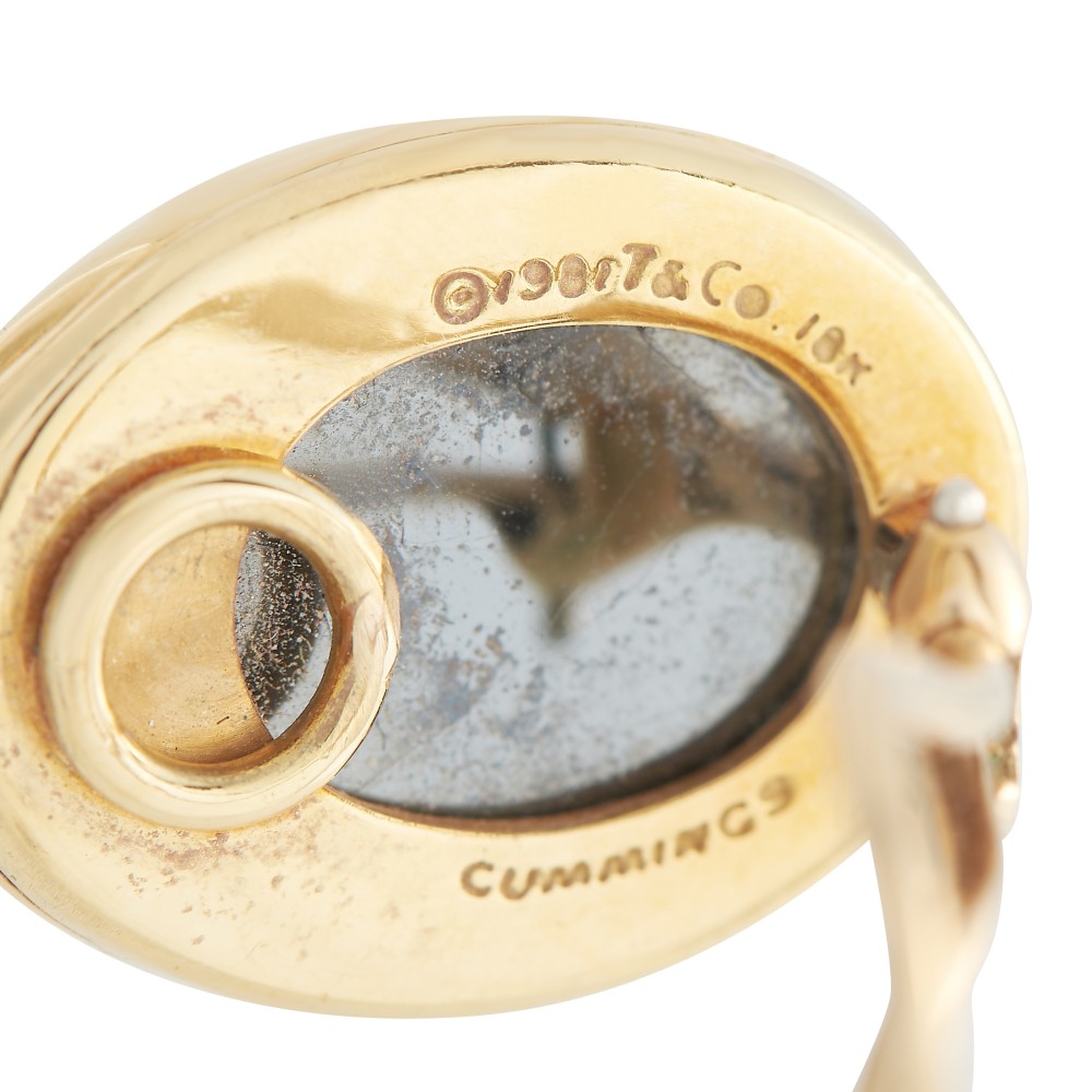 Set with 2 oval-shaped hematite cabochons.