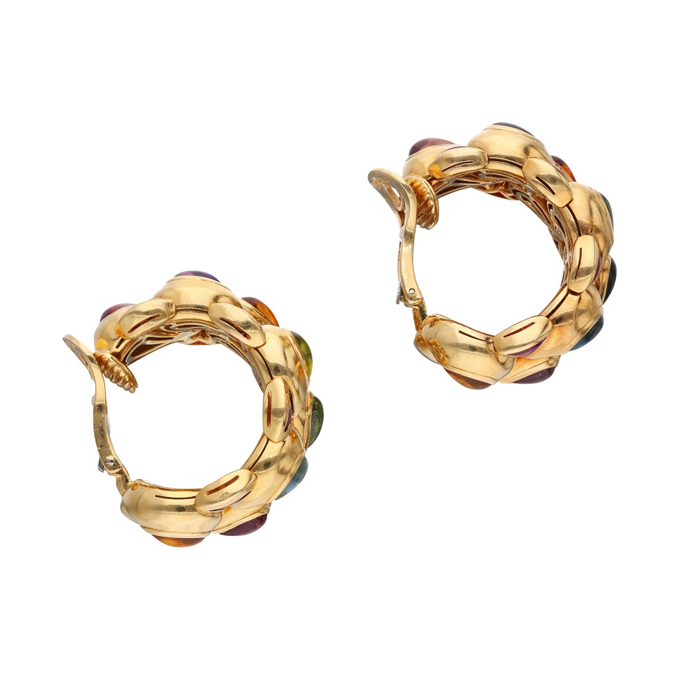 Of the Casmir collection, composed of tourmaline, peridot, topaz, citrine and amethyst cabochons.