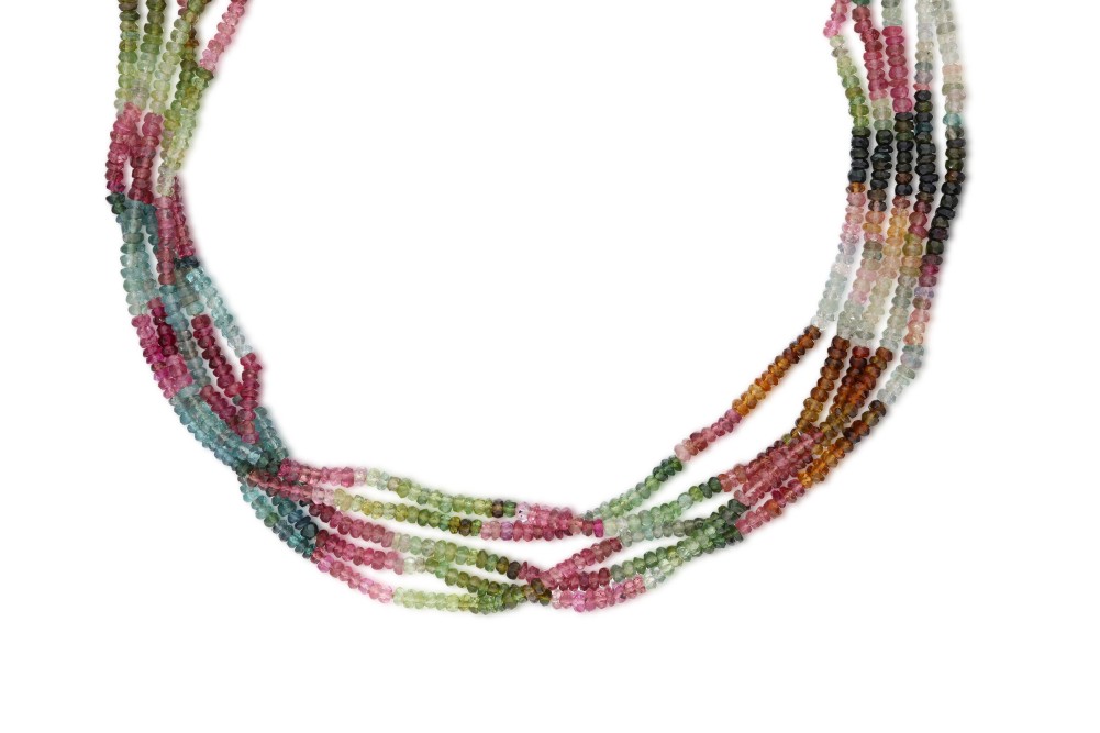 Composed of multicolor tourmaline beads, completed by a gold clasp.