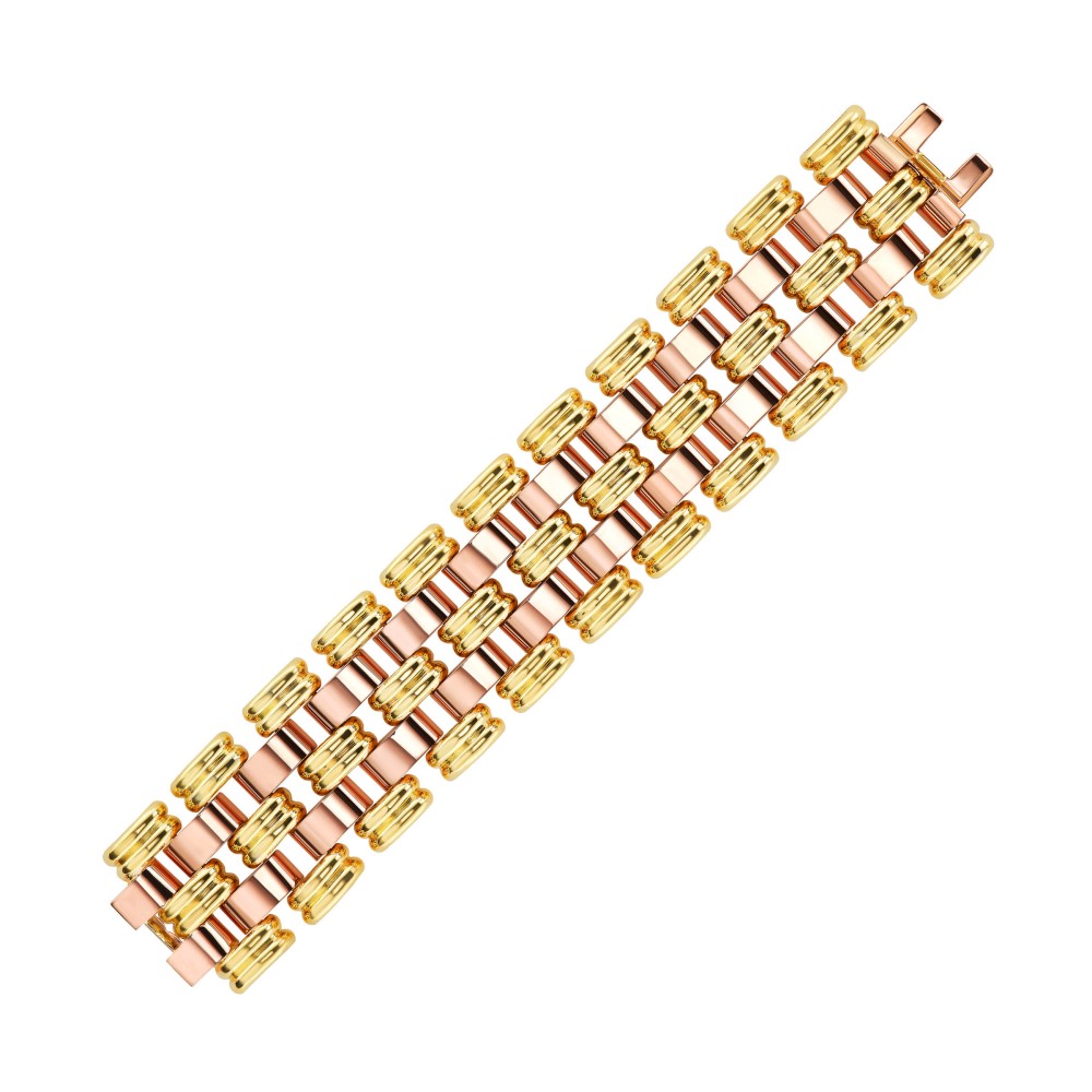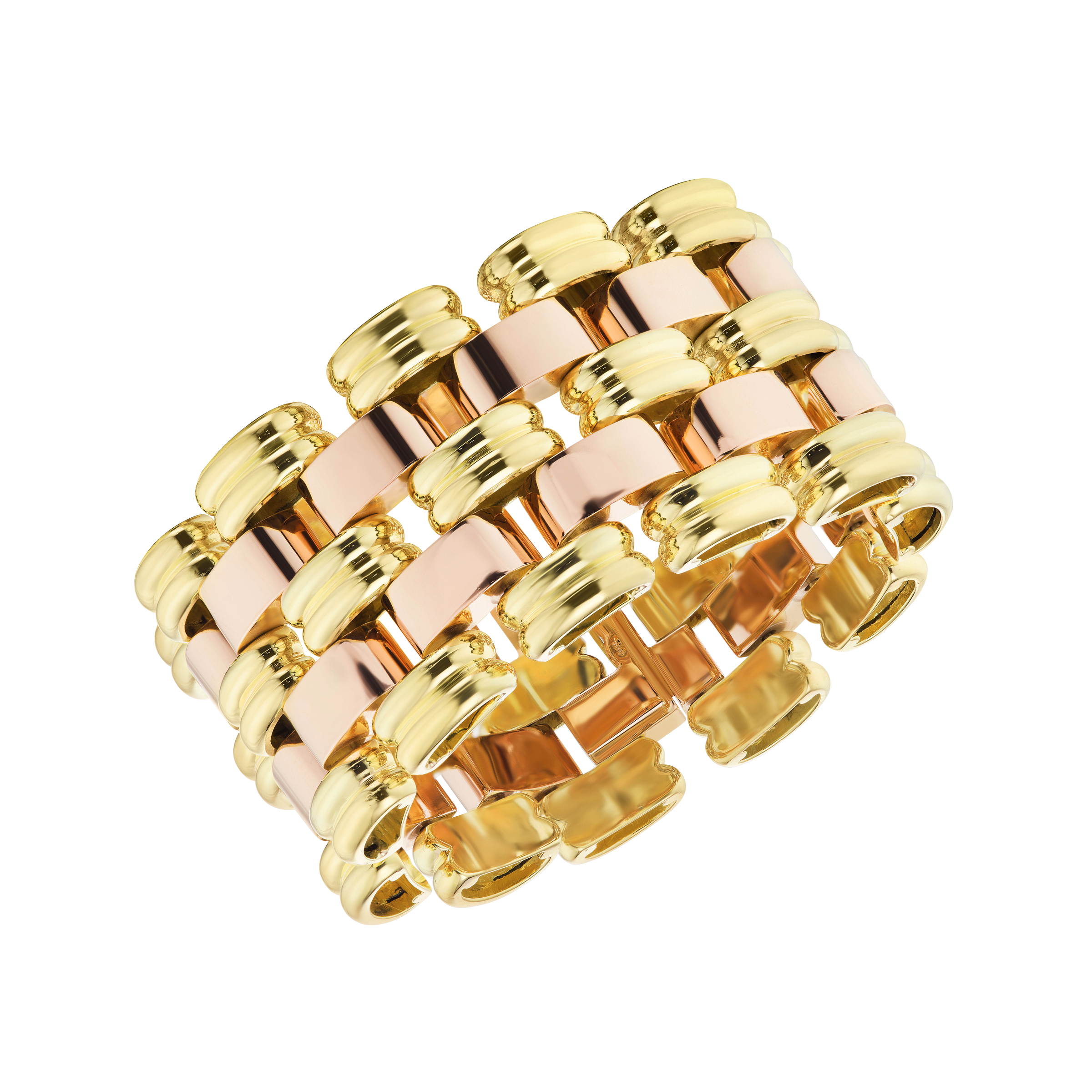 Featuring yellow and rose gold links.